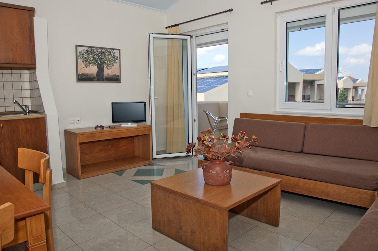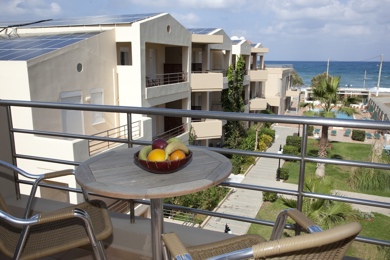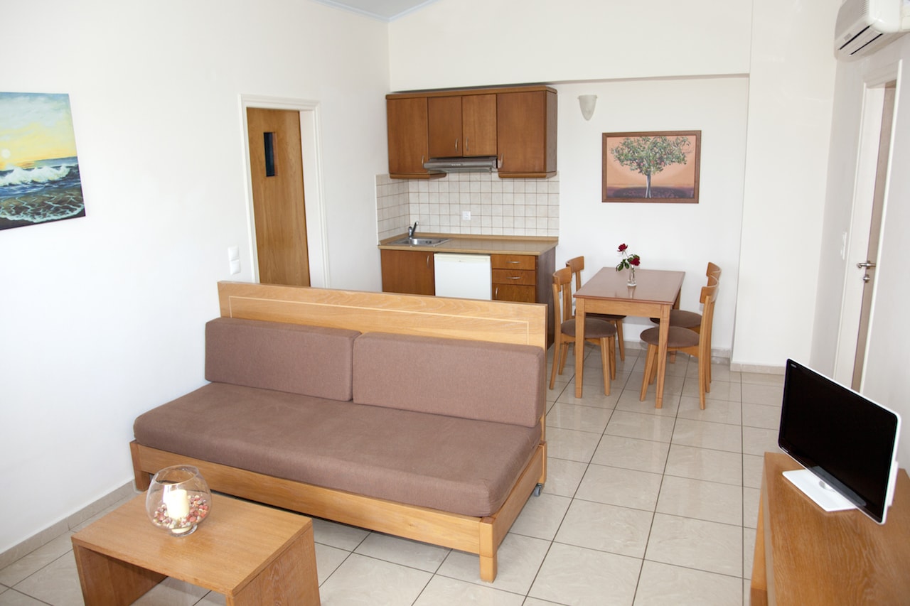 The accommodation comprises 62 modern, spacious, and fully equipped apartments, including 36 studios and 26 suites. All the apartments have a private, furnished balcony or terrace with either a sea, mountain, garden, or pool view. They include dining area, satellite TV, hairdryer, bathroom amenities. At the poolside bar, guests may have snacks, beverages, and refreshing drinks. The hotel's restaurant offers buffet-style Cretan cuisine for breakfast and dinner. The Chania airport is 16km from the hotel, while the center of Chania, is 14 km distant. Less than ten minutes' driving will take them to the beachside resort of Platanias. Book Maleme Mare Hotel now! and compare rates offered by various online booking services.