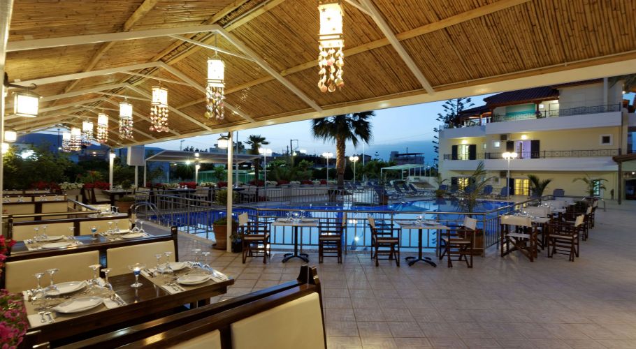 Philoxenia Hotel consists of 52 rooms in 2 blocks, comprising Standard or Superior Double rooms for 2 or 3 persons and Family or Superior Family rooms for 3 up to 5 persons. They come with a fridge, satellite T.V, air condition and a balcony with pool or garden view. Safety deposit box is available with extra charge. The hotel amenities of Philoxenia include a tropical bar that serves a range of food and drinks all day long, a swimming pool with a small children's pool, and complimentary loungers and umbrellas. Every morning there is a buffet breakfast, and every evening there is dinner near the swimming area. The hotel's services include a reception area to help you with your stay and provide you with any further information you might need to explore the island of Crete or the surrounding area of Malia. As well spa facilities are available with a jacuzzi and sauna.