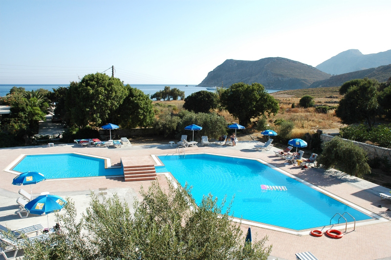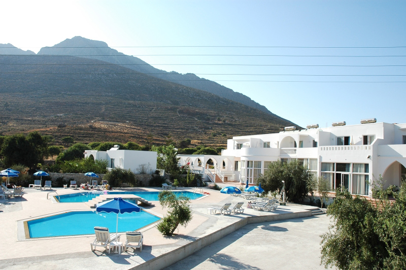 The three-star Eristos Beach Hotel is located on one of Tilos' finest sandy beaches. The complex is made up of four separate buildings that surround the hotel's pool inside a 25-acre landscape. This Tilos hotel features six apartments and twenty-two studio rooms that can accommodate two to four people each. All rooms of Eristos are fully equipped and they have a balcony or terrace with view of the sea or the garden and pool area. Among other amenities include air-conditioning, phone, fridge, kichenette, Wifi and TV. A restaurant and bar for breakfast, food and beverages, a swimming pool for recreation, a parking area for your car, and wifi connectivity for communication are all included in some hotel amenities.