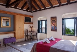 The Byzantino Boutique Hotel, housed inside the Monemvasia castle, offers you the chance to have a memorable getaway from your everyday grind while enjoying all the modern comforts and services of a medieval castle. This Monemvasia hotel is made up of several structures with classic rooms and apartments that have undergone extensive interior renovations with careful consideration for their architectural and historical significance. Made of wood and stone, each room has beautiful décor, incredibly attractive paintings, and stylish, traditional antique furnishings. They have a wooden floor, wooden beams for the ceiling, and pricey carpets, linens, and fabrics. The majority of our rooms have a stunning balcony or window overlooking the sea and the castle, which makes guests feel as though they are traveling. While every room has air conditioning, a TV, a refrigerator, and free Wi-Fi internet, the Exclusive Collection offers a few more amenities to make your stay truly exceptional. Double, triple, family, and suite accommodations are available at the Byzantino Boutique Hotel for couples, families, and friends looking for a distinctive vacation in Monemvasia.