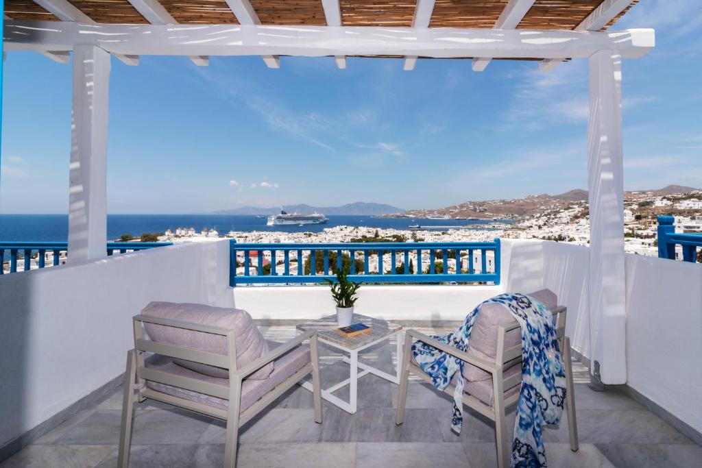 Perched atop Mykonos' western hills, the Marisso Hotel has an ideal position with sweeping views of Mykonos town and the nearby islands of Delos, Tinos, and Siros. The hotel is conveniently accessible to the town center, yet it is perched high enough on the hill to give breathtaking views. The main bus station is located about fifty meters down the road, and the ancient harbor is only a five-minute walk away. It takes less than 10 minutes by car or taxi to get to the airport and the New Port. Book Marisso Hotel Now! And compare rates offered by various online booking services.