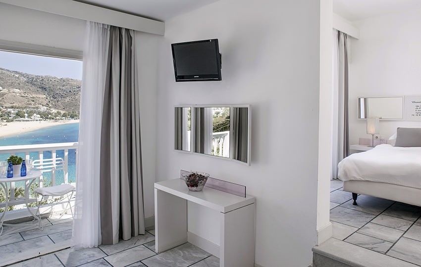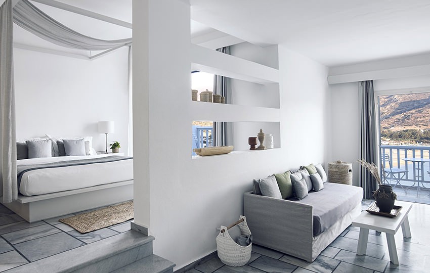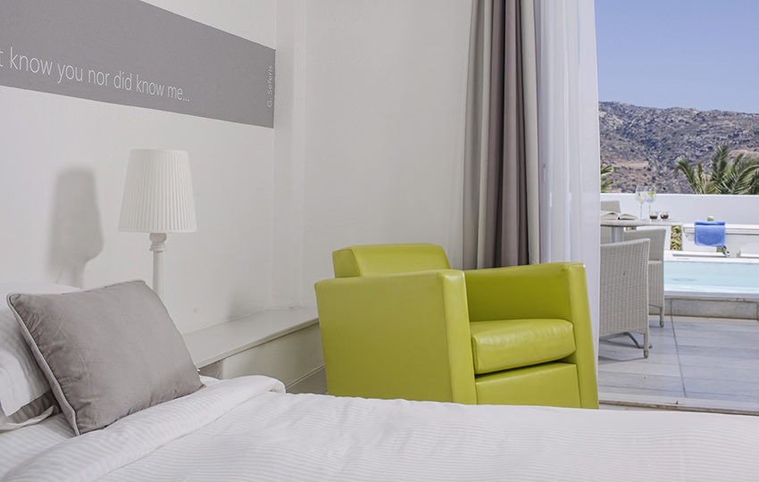 Designed in a way that highlights the dynamic combination between imaginative materials and colours and well known for its authentic island hospitality, Ios Palace Hotel & Spa in Mylopotas offers every guest the opportunity to feel closer to the local traditions and culture. The hotel interiors are done over and are able to offer different room types that fulfil even the most pretentious guest’s needs. 60 rooms in total, with wide choices between Happy, Standard, Superior, Junior Suites, Standard Suites, Family Suites, Superior Suites with private swimming pools, and the most impressive, the Master Suite with private swimming pool.