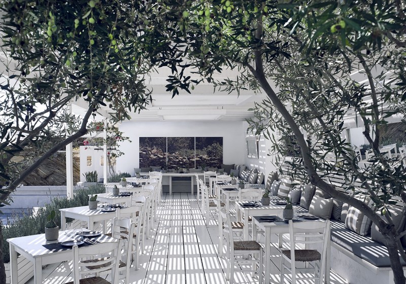 The resort, which is situated in front of Mylopotas Beach, gives visitors the impression that the Aegean Sea's vivid blue color is all around them, and the Cycladic sun is kissing them.
