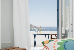 The apartments can host two to four people and are quite roomy and well decorated. They have a dining table, refrigerator, and air conditioning. Enjoy the property's swimming pool and bar for your fun and relaxation. Manthos The place has an excellent view of the sea and is only a short distance from the beach. Additionally, the port of Ios is ten minutes away and Chora is five minutes away via bus. All areas of the wider Ios area are easily accessible from Manthos Place via public transit, including buses and taxis.