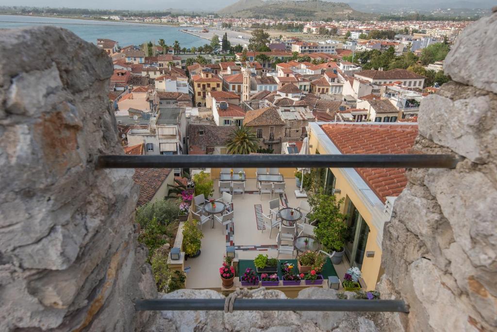 The Amfitriti Palazzo is a quaint hotel in the ancient town that puts you right in the center of Nafplio's rich heritage of culture.Nestled behind the citadel of Akronafplia in the heart of Nafplio's historic area, the Amfitriti Palazzo welcomes you to experience luxury and breathtaking views. The elegantly decorated rooms, which vary in design and style, provide opulent facilities and sophisticated décor. Every room has a minibar, satellite TV, a hair dryer, cosmetics, and a spa bath or hydro-massage shower jets. Breakfast is served every morning to start the day for activities. The hotel is close to all the attractions of Nafplio's old town, including museums, the three castles (Palamidi, Akronafplia, and Bourtzi), galleries, dining options, contemporary shops, and bars.