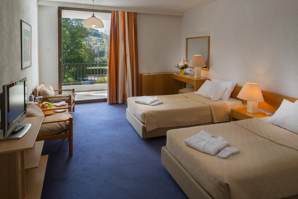 Amalia Hotel Olympia is located at a unique place that combines the energy, the space and the serenity of Ancient Olympia in the Peloponnese. As all the Amalia Hotels, it is set in a green filled landscape with olive trees. From every corner of the white marbled spacious lobby, guests enjoy the endless green scenery along with the open air terrace of the lounge café. The restaurant and the large swimming pool are situated on the ground level with immediate access to the gardens, providing a relaxing holiday to all guests. The Amalia hotel’s 147 large comfortable guestrooms spread over three wings and three levels, all facing the serene gardens through balconies and terraces. They have all the amenities needed for a comfortable stay.