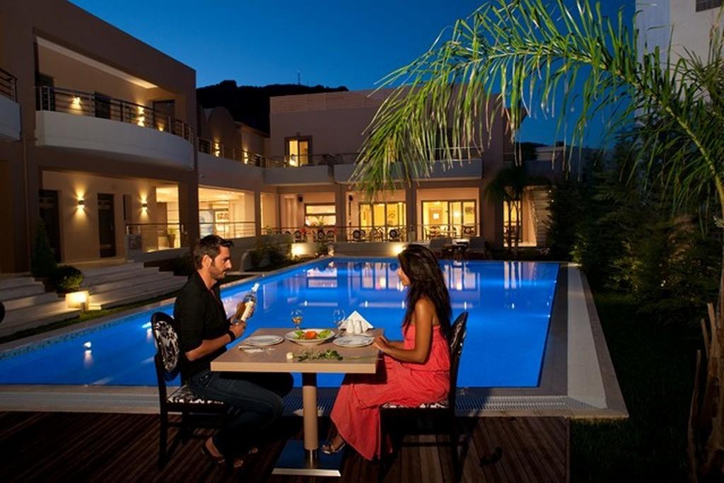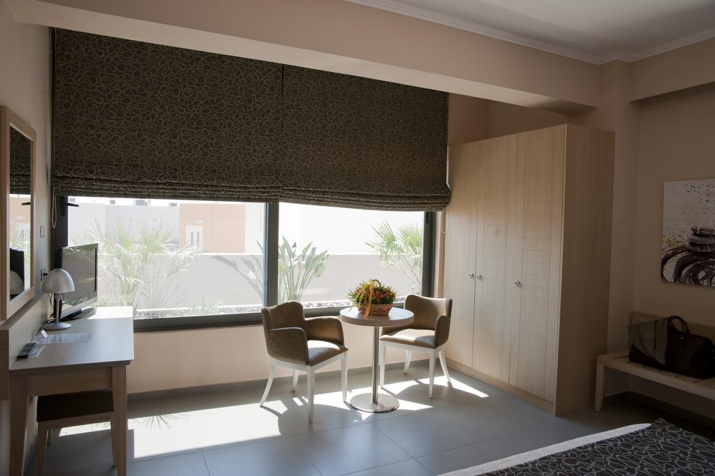 The hotel features 33 Deluxe-Superior rooms and 1 Executive Suite. All rooms are tastefully decorated with cozy living areas and a plethora of well-integrated amenities. The room comes with a kettle, for coffee and tea making, and is equipped with all amenities needed to make your stay a unique experience. Enjoy facilities around the hotel including a rich breakfast every morning, restaurant to experience Cretan gastronomy and wellbeing services with massage treatments and sauna or jacuzzi.