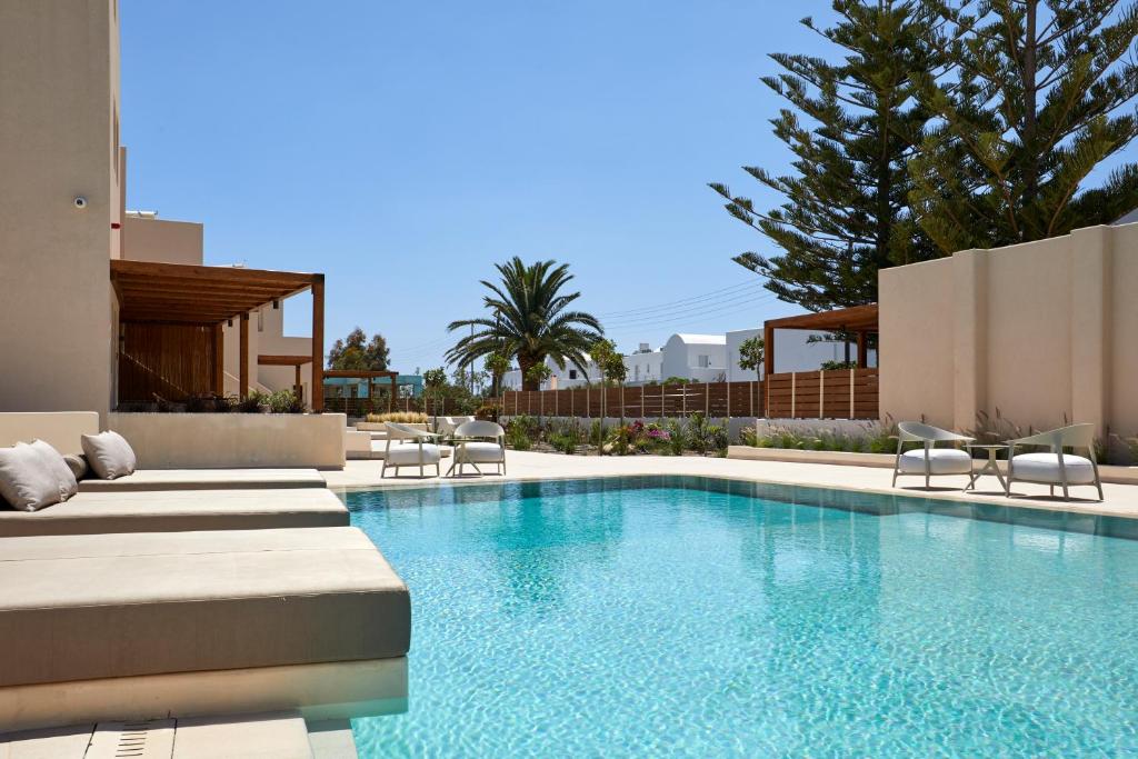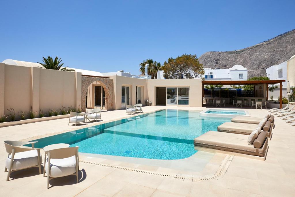 The Apricus Suites Hotel is located not far from Perissa, a well-known black sand beach in Santorini. A charming hotel with all suites designed for those who want easy elegance in a peaceful setting. Visitors are welcome to make full use of the amenities, unwind by the pool, and sip drinks while reading a book. With great attention to detail, Apricus Suites produces warm, open areas as well as large, airy rooms with an organic style and modern interiors that are furnished with all the amenities of today.