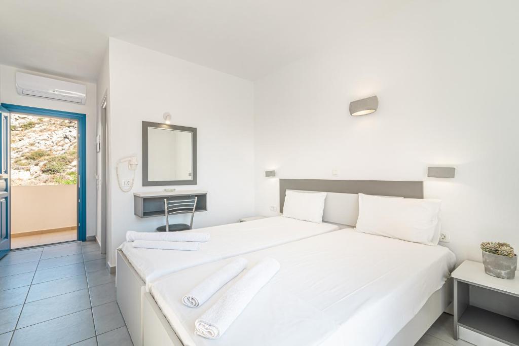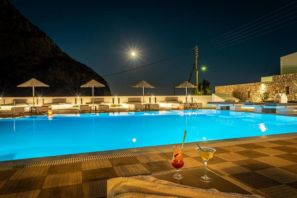A popular destination due to its black beach is Perissa Village on the stunning Greek island of Santorini. Situated just 300 meters away from the stunning Perissa beach, Marianna Hotel eagerly awaits your arrival and wishes you a delightful stay and enjoyable vacation in Santorini. The welcoming setting and cozy family vibes guarantee an amazing time throughout your stay in Santorini. The Marianna hotel has a snack bar where breakfast is provided, a swimming pool with a pool bar, and other contemporary amenities. The rooms of Marianna are light-filled, with hardwood furniture and tiled flooring. They are all furnished with a TV, a safe, and air conditioning. Included is a private balcony or patio, with most offering views of the mountains or sea. There are complimentary sun loungers and umbrellas beside the pool, where guests may unwind with a beverage. At the pool bar, you may also get light appetizers. The Marianna Hotel in Perissa is located 200m from restaurants, shops, and cafés. The busy town of Fira is ten kilometers away. It takes 11km and 12 km, respectively, to go to the port and airport of Santorini.
