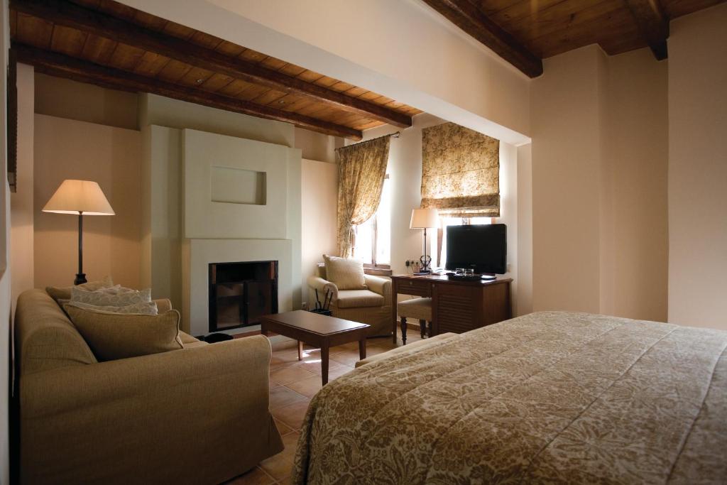 Tsopotos Mansion, the first Egyptian-style mansion on Mount Pelion in the center of Portaria, is home to the luxuriously rebuilt Despotiko hotel, which honors the area's history. There are luxurious rooms with Mount Pelion or Pagasitikos Gulf views that come with free Wi-Fi and an LCD cable TV. Bathrobes, slippers, and opulent amenities are provided in marble bathrooms. A fireplace is a characteristic in some apartments. Every morning, a classic breakfast buffet of freshly baked pies and pastries from the area is served. There is a children's playroom on the premises. Throughout the winter, guests of Despotiko can savor their coffee, drink, or handcrafted confections in the hotel's lovely lounge while surrounded by a cozy fireplace. During the summer, guests can have a cool drink or iced coffee on the stone terrace after returning from swimming on the gorgeous East Pelion beach or the Gulf of Pagasitikos. The distance between Portaria and Volos is just 12 kilometers.