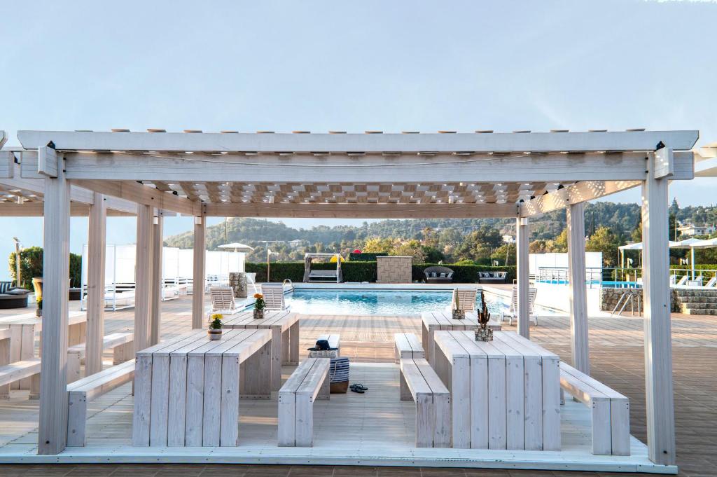 The Galaxy Hotel is the perfect retreat for anyone who wants to experience the Argolic Gulf's deep blue waves, the Mediterranean sun, and the Peloponnese's innumerable splendors with all of their senses. It is only 4 km from Porto Heli and features a private beach and a pool. Every room of the hotel has a refrigerator and a flat-screen television. There is a hair dryer in the private bathroom. Views of the sea are expansive from balconies. All day long, a selection of coffees, light snacks, and refreshing drinks is available at the poolside snack bar. The on-site restaurant and the poolside snack bar serve Greek and Mediterranean cuisine for lunch and evening. A children's playground and a basketball and tennis court are among the sports facilities. The Galaxy hotel in Porto Heli is 68 km from Nafplio, while the Ancient Theatre of Epidavros is 50 km away.