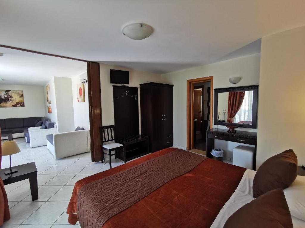 It is without a doubt the greatest complex in the area because of the waterslides, the welcoming family atmosphere, and the excellent service. The Sidari Water Park Hotel in Corfu is perfect for families and anyone looking for some quiet time. It is only five minutes from the beach and the main road, making it both walkable to the busy Sidari center and far enough away for a restful night's sleep. Every room at the hotel has a seating area, a refrigerator, a safety deposit box, a flat-screen TV with satellite channels, and a private bathroom with a shower, complimentary amenities, and a hair dryer. A kettle is provided in each room, and some of the rooms have a patio, while others offer views of the sea. Also features a seasonal outdoor swimming pool, free private parking, a fitness center, a children's playground, a restaurant/bar, and water park facilities. A continental, full English/Irish, or American breakfast is available at the property. The Sidari Waterpark hotel is 2 kilometers from Canal D'Amour Beach, and Corfu International Airport is 35 km away.