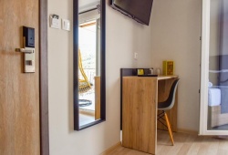 Entelia Hotel is located in the heart of Skiathos, offering luxury accommodations for a comfortable stay. Entelia consists of 11 rooms that meet all modern requirements, and they come with air conditioning, a flat-screen TV, a private bathroom with a shower and complimentary toiletries, and some have a terrace. Every room will have a refrigerator for visitors. The hotel has a bar and free WiFi throughout the property. It takes five minutes to get from the harbor to the heart of Skiathos. There, you can explore a vast array of restaurants, cafes, bars, and shops. Three minutes away is the home of renowned Greek author Alexandros Papadiamantis, and twelve minutes away is the beach known as Megali Ammos. The Entelia hotel is 25 minutes from Skiathos Airport.