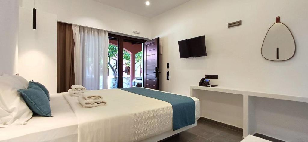 Rigas Hotel in is situated In Skopelos Town (Chora), 400 meters from the stunning harbor. You can go back in time through the alleys of Chora. Explore the Venetian castle, museums, medieval cathedrals, and traditional island taverns serving regional cuisine. Families looking for cozy and natural retreats on Skopelos Island will love the Rigas Hotel. The hotel provides a range of accommodation choices, such as apartments and studios with kitchens. Additionally, each has a refrigerator, a 32-inch LED TV, and complimentary WiFi. Every apartment has a large patio, veranda, or balcony with outdoor furniture. The restaurant in the Rigas Hotel serves dinner and a Greek breakfast made with local ingredients. There is free public parking close by, and Wi-Fi is available throughout. At the Spa and Wellness Center of the sister resort Skopelos Holidays Hotel & Spa, guests can take advantage of discounted prices on all services and therapies.