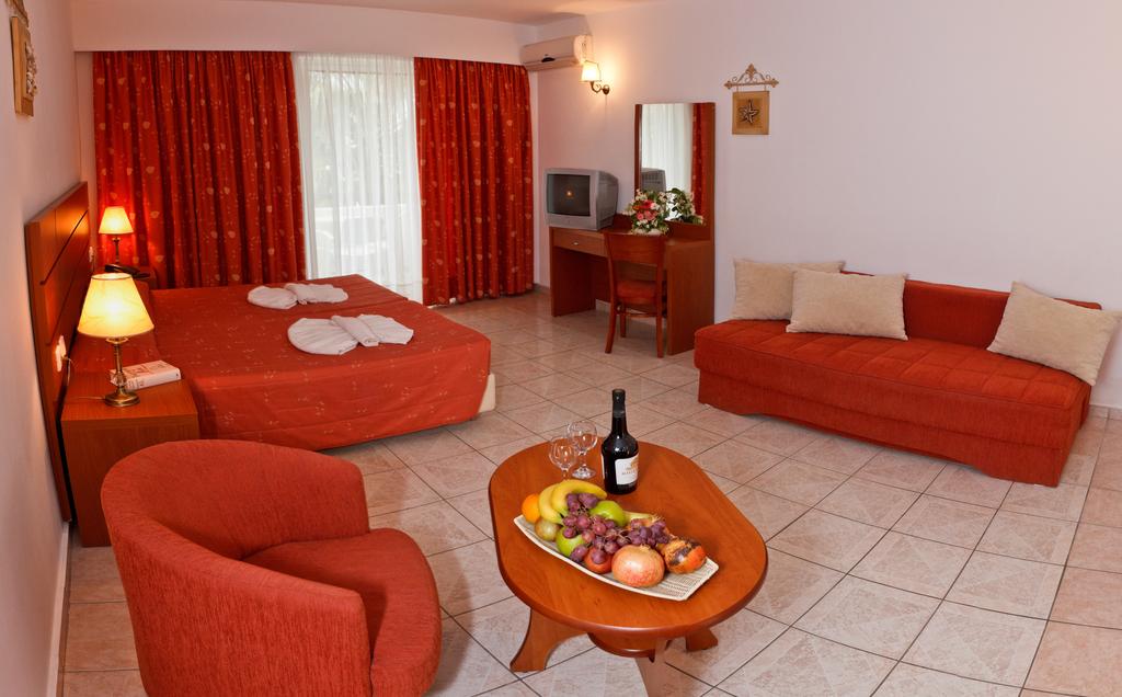 The cozy loungers of Gaia Kos Village surrounded by the reception area, invite visitors to unwind while enjoying satellite TV or Wi-Fi connectivity that is available throughout the hotel's public and private spaces. The structures containing the hotel restaurant and main bar, as well as the several lodging buildings and the two freshwater pools in Gaia Village, each with a dedicated children's section, are all accessible from the beautiful lawns and flagstone-laid walkways that extend beyond the main building. The pools are surrounded by comfy lounge chairs and umbrellas, and helpful staff members are always on hand to provide you beverages and snacks from the Pool Bar, respond to any inquiries you may have, offer guidance, or assist you in organizing your next outing or activity.