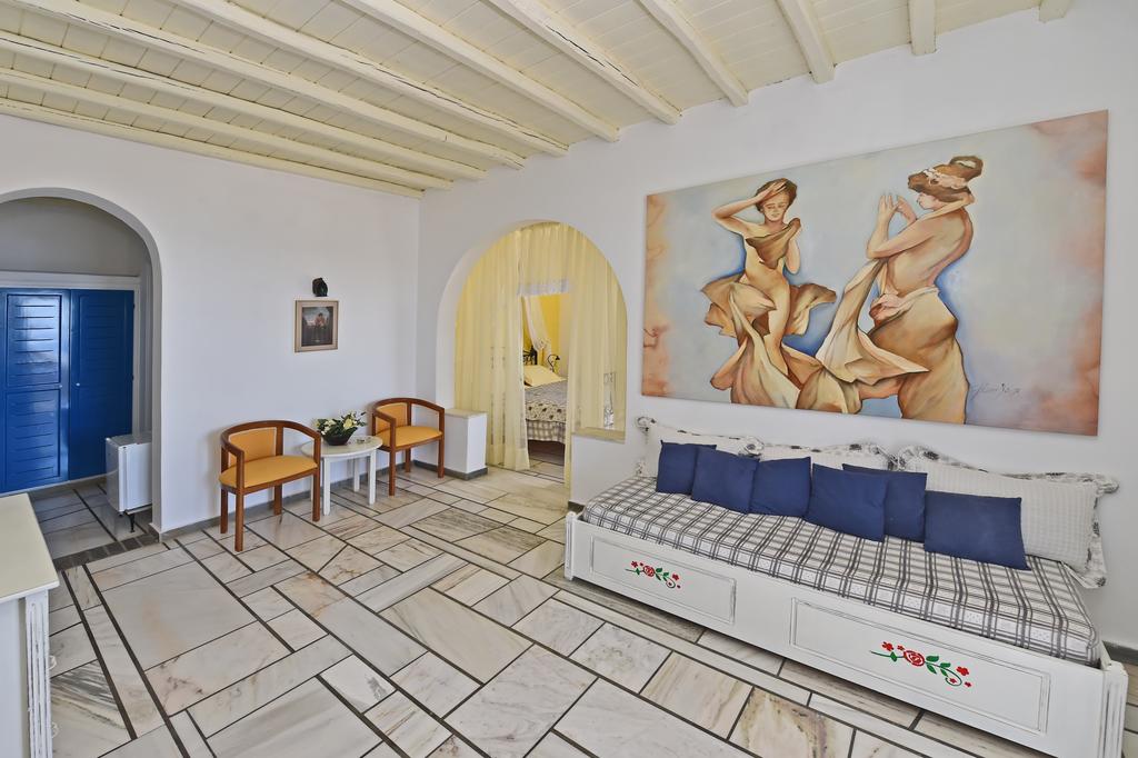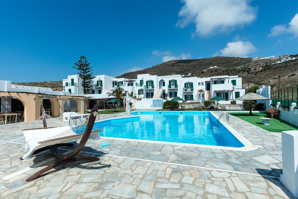 Porto Tango Hotel is a first-class hotel located on the south-east coast of Tinos Island, by the bay of Agios Ioannis Porto. The accommodations are built in a theatrical structure looking out at the magnificent seafront of Agios Ioannis Porto. The luxurious suites, in combination with the high-quality services offer and delicate facilities, create a unique atmosphere of elegance. All rooms have panoramic sea views. Room amenities are needed for a comfortable stay. They come with A/C individually controlled, television, bathroom with toiletries, hairdryer, mini bar, wifi access and balcony. Porto Tango serves a buffet breakfast in the morning and invites guests to have a drink at a pool bar. The hotel is 30 meters from the Aegean Sea in Tinos. The accommodaion is within ten minutes' drive from Agios Fokas Beach. When desiring to travel to Tinos, book Porto Tango Hotel and enjoy your stay.