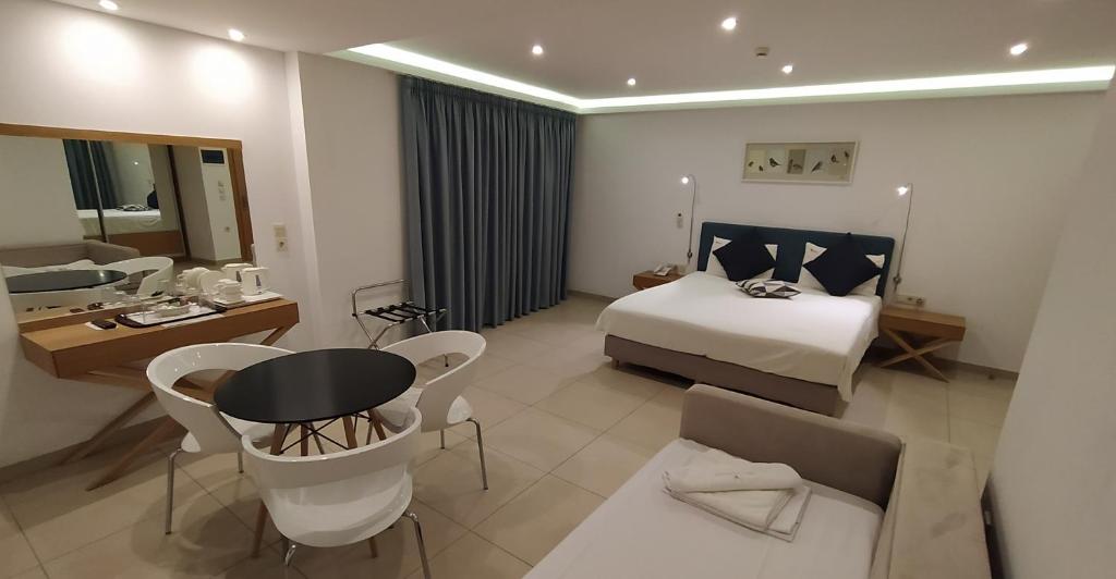 The Apollon Hotel offers a range of lodging options for people looking for a distinctive vacation experience in the center of the Peloponnese. It is situated in the charming seaside town of Tolon, just two hours' drive from Athens. The hotel's rooms include a safety deposit box and a flat-screen TV with satellite channels. Every accommodation at the Apollon Hotel has a balcony, and some have views of the pool. Every room will have a refrigerator for visitors. Greek and Mediterranean food is served at the restaurant, and guests can enjoy cocktails at the bar and the outdoor pool. All of the accommodations have outdoor amenities, a private parking area, and are ideally situated by the sea or only a short stroll from the town center and the nearby beach. In addition to enjoying a leisurely vacation, visitors can explore the surrounding charming city of Nafplion and the historic treasures of Mycenae, Epidavros, Tiryns, and Assini.