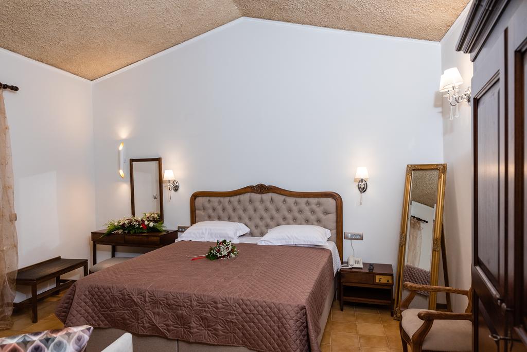 Convenience is at your fingertips with the bus station just 30 meters away, and a minimarket and pizzeria within a short 35-meter distance. If you're looking to explore the area, the famous Daskalopetra Beach, known for its sandy shores, is only 1.5 kilometers away. Chios Town and the port are a mere 5 km away, making it easily accessible for our guests. Additionally, Chios Airport is conveniently located just 7 km away for hassle-free travel. Experience the beauty of Chios at the Agia Markella Hotel in Vrondados, where comfort and convenience meet to create an unforgettable stay.