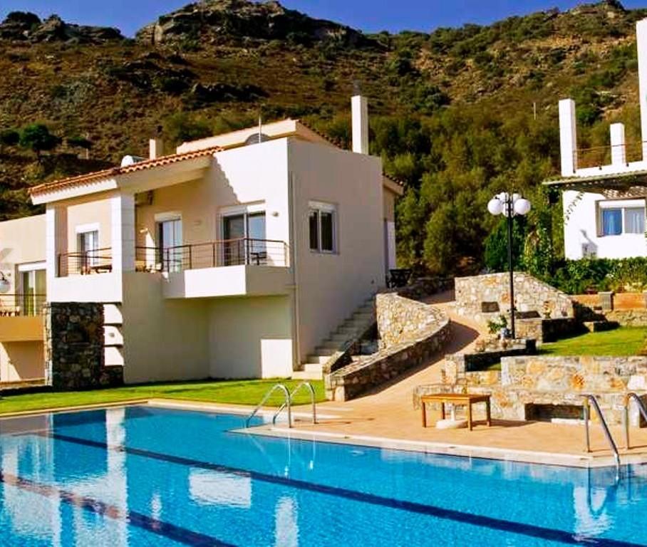 Vacation in Crete and "Agnanti" villas with the magnificent view over the bay of Agia Pelagia and the Cretan sea.