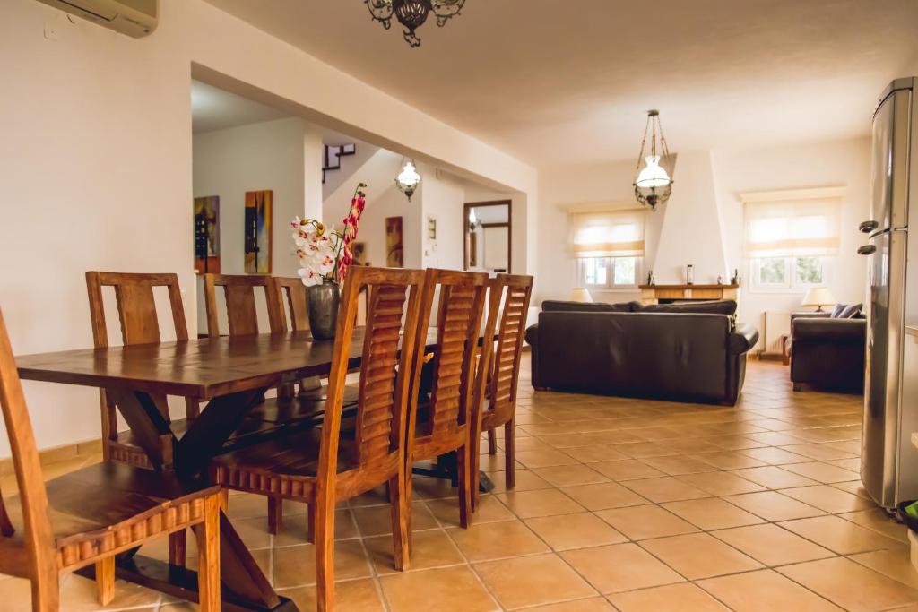 The stunning shaded patios, the BBQ area, the infinity pool, and the thoughtfully planted native plants with traditional stone walls that blend into the natural surroundings are all available for you to enjoy while you relax and take in the breathtaking, never-ending sea view and distinctive sunsets outside. The villa can accommodate up to ten guests.