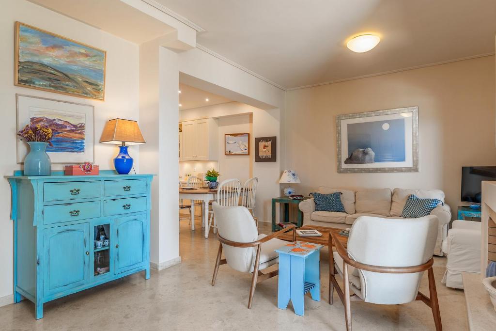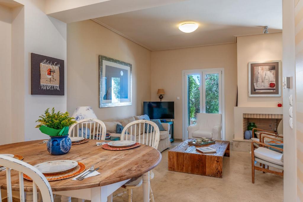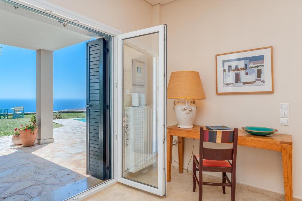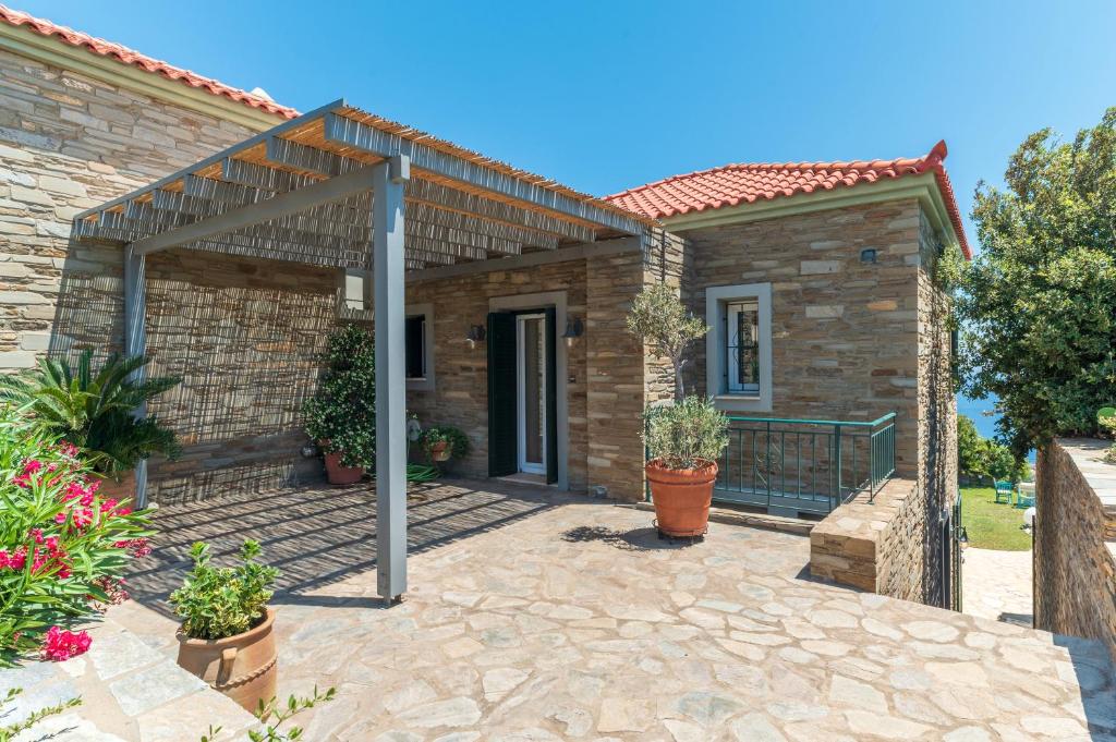The vacation rental Villa Oliva on Andros has all the amenities you need for a relaxing vacation. With four bedrooms, three bathrooms, a kitchen, and a living room, the 100 m² property can house eight people. Wi-Fi, a television, and a washing machine are extra conveniences. There's also a baby cot available. This accommodation does not provide air conditioning. This vacation property offers you a balcony, an open terrace, a garden, and a private outdoor pool. There is a parking spot on the property. The old town (Chora) is roughly ten minutes' drive from Villa Oliva. Some of Andros' well-known hiking routes, as well as the beaches of Gyalia and Piso Gyalia and their magnificent tavernas, are only a five- to ten-minute drive away.