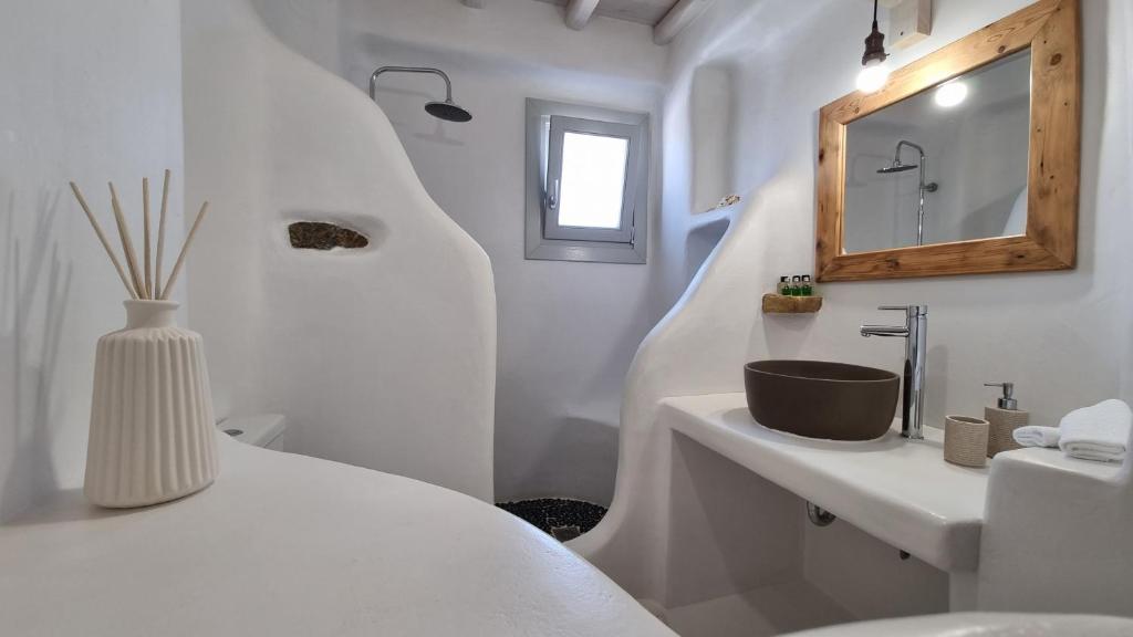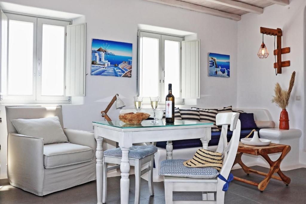Experience the allure of the Antheia Suite located in the region of Ano Mera in Mykonos, where every element has been carefully planned to honor the rich Cycladic culture and classic Mykonian architecture. Bask in the serene elegance of the mostly white Suite, where classic hardwood logs and simple construction combine to create a charming ambiance. This fascinating suite offers all the facilities needed for an unforgettable vacation. The home features an open-plan kitchen with a Nespresso coffee maker, a huge living area with a built-in couch bed, a separate bedroom, and a bathroom with white walls. It also has beamed ceilings. There is free on-site private parking as well as free WiFi. The suite can accommodate up to 3 guests.