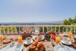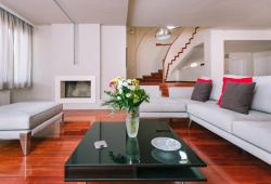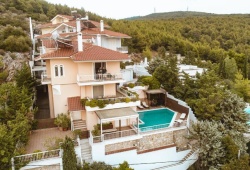 Villa Politia has a view of the entire city and is located in the most upscale area in Athens. The top floor has five large bedrooms, including a master bedroom; one is a romantic attic with two more beds and a separate bathroom; there are three living areas with every comfort imaginable; one has a large kitchen, dining room, and sitting area; the other two have direct access to the private pool and garden area, inviting you to unwind and take in the stunning view. In addition, Villa Politia has TV screens, a bar, sun loungers near the pool, an elevator, private parking, Wi-Fi, and fire pits (for winter guests). The villa can accommodate up to 17 persons. Villa Polita has easy access to the airport and the highway to nearby Athens attractions, such as Delphi, Mycenae, Nafplion, Epidavros, and many more, which is just as crucial as being close to the city's historic core, upscale retail centers, and nightlife. The highway is easily accessible, allowing for a 30-minute drive to Piraeus Port or a day at the beach. You can take a one-day trip to several of the nearby islands from there. The best of Athens coupled with laid-back elegance is what this year-round location has to offer.