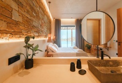 Carved into the hillside of Ios, Villa Mirabilis is a tranquil, avant-garde holiday home that offers seclusion, tranquility, and breathtaking sunset views across the port. You'll discover tranquility, beauty, and that unique sense of home whether you're dining on the terrace or relaxing by the private pool. There is free WiFi available all across the property. Villa Mirabilis has a washing machine, a fully furnished kitchen, and air conditioning. Convenience is guaranteed by free private parking on-site. Four to six persons can stay on the property. Being only 300 meters from Chora, the main town of Ios, is one of the villa's main features. In a matter of minutes by foot, you can go to shops, restaurants, and entertainment centers.