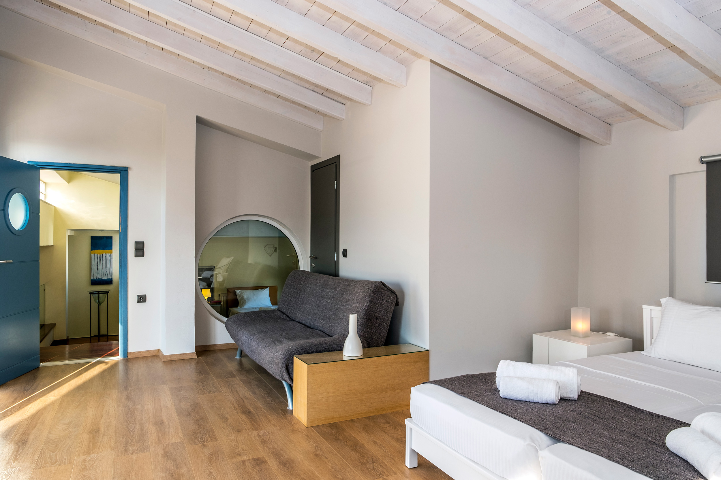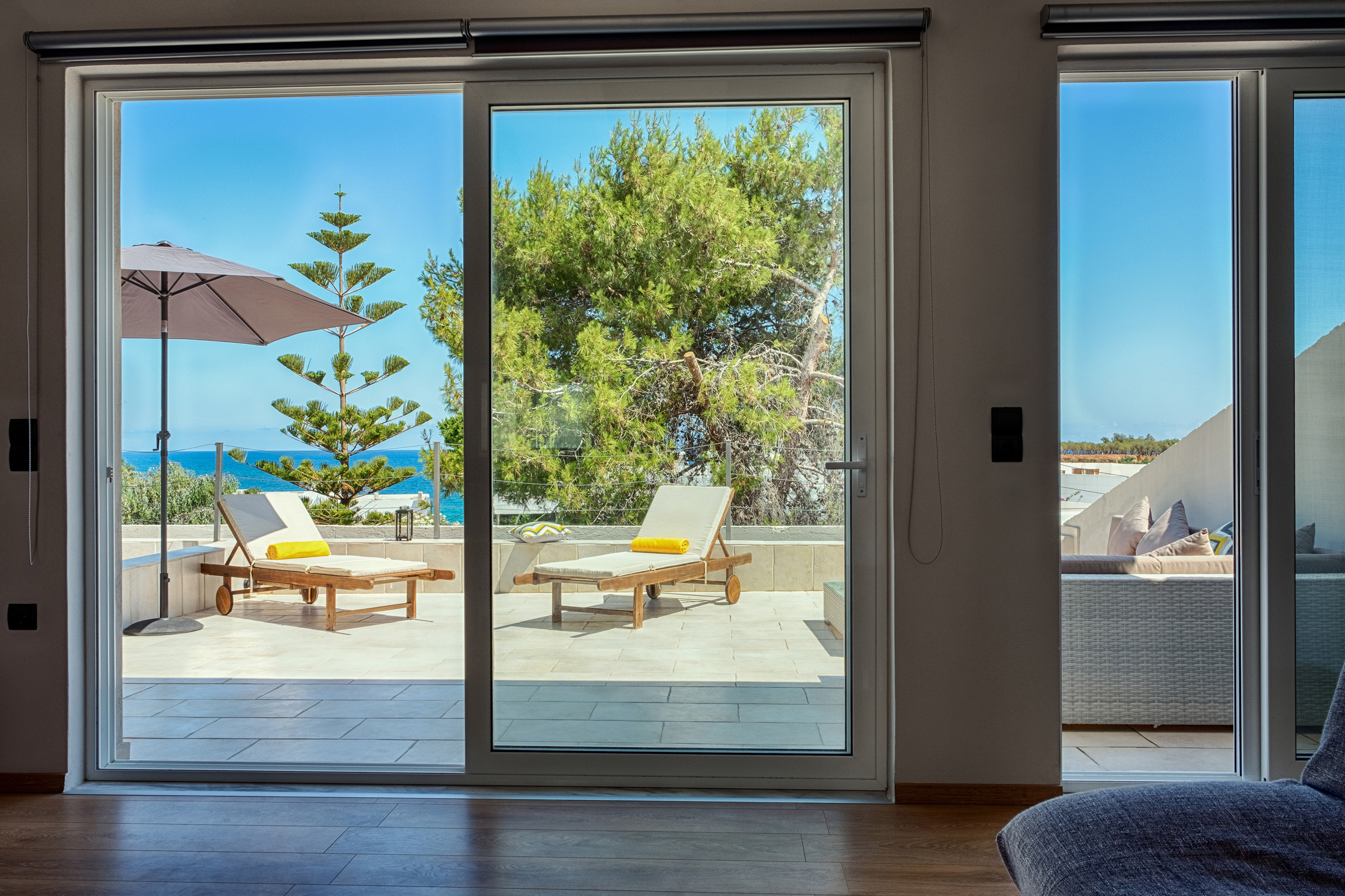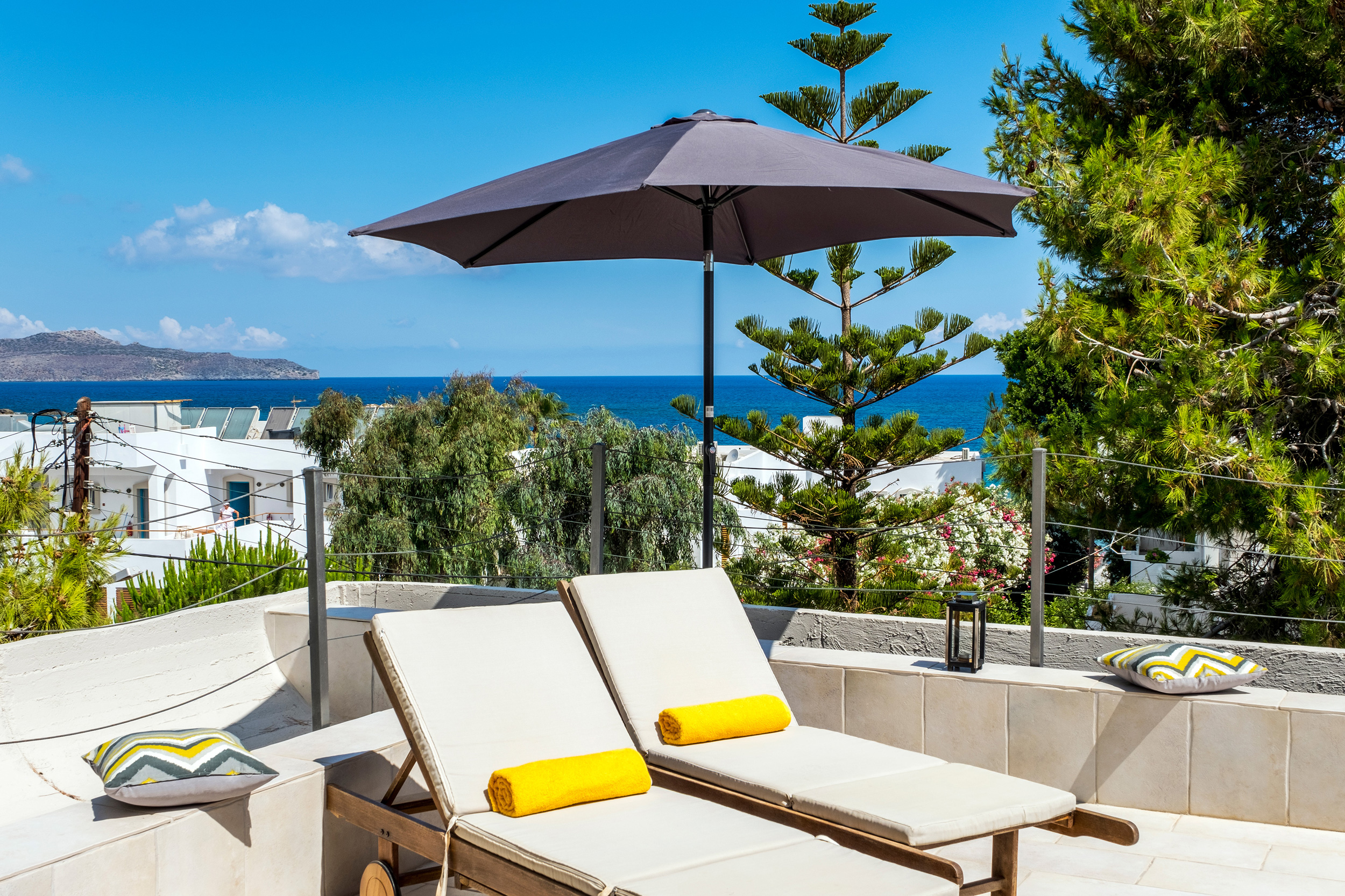 The Terezakis House is in a very favorable situation, about 4.5 kilometers and a 10-minute drive from Chania, surrounded by pine trees and with a view of the sea. It is the perfect backdrop for peaceful vacations for families with kids. It also provides convenient and secure access to the beach, which is only 30 meters away by an unscheduled road. In addition to the promised serenity and leisure, the stunning sea bay with a Blue Flag, a lifeguard tower, and a first aid station—which is situated between the five-star hotels "Kalliston" and "Domes Noruz"—offers you the opportunity to engage in various water sports (windsurf, kitesurf, surf, SUP, etc.).