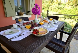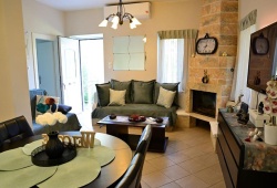 Villa Theodora is situated in the region of Kioni in Ithaca and is surrounded by rich flora, olive groves, cypress trees, and natural surroundings. With Mavrona Bay and the beach just a short stroll away, the house offers a breathtaking view of the sea. The villa has three bedrooms and two bathrooms and can sleep 2-6 people. Amenities include a spacious living room, a fully equipped kitchen, free WiFi, air conditioning, and a washing machine. A work desk, microwave, and dishwasher are extra features that guarantee a comfortable stay. On a nice summer's evening, you may eat outside on the patio of Villa Theodora while taking in the beauty of Mavrona Bay. Alternatively, you can read a good book and lounge on the brand-new deck chairs. Like most Ithacans, you can unwind in the hammock and take a nap in the outdoor living area in the bottom garden. If you plan a visit to Ithaca for a relaxing vacation, this villa is the ideal place to be.