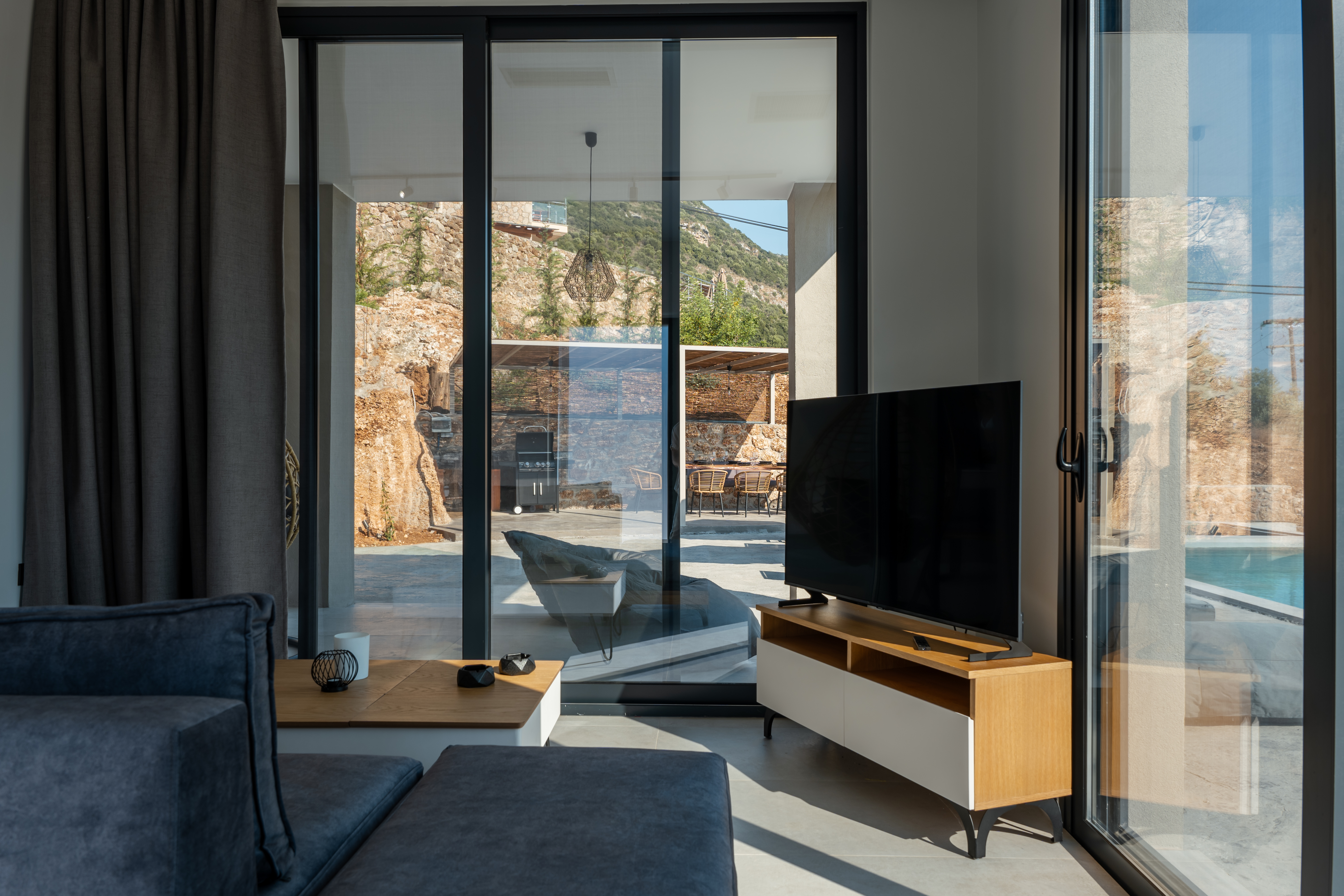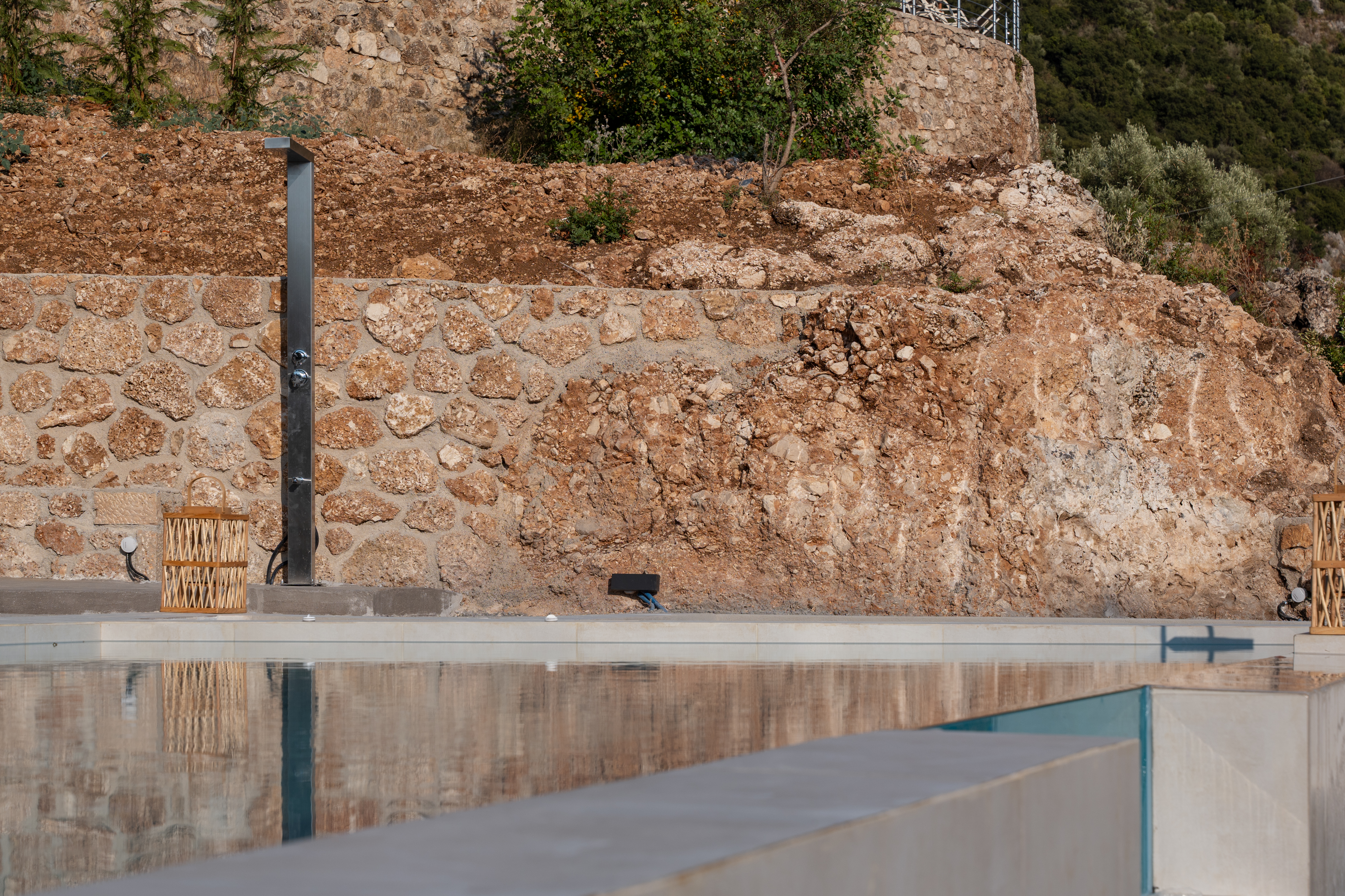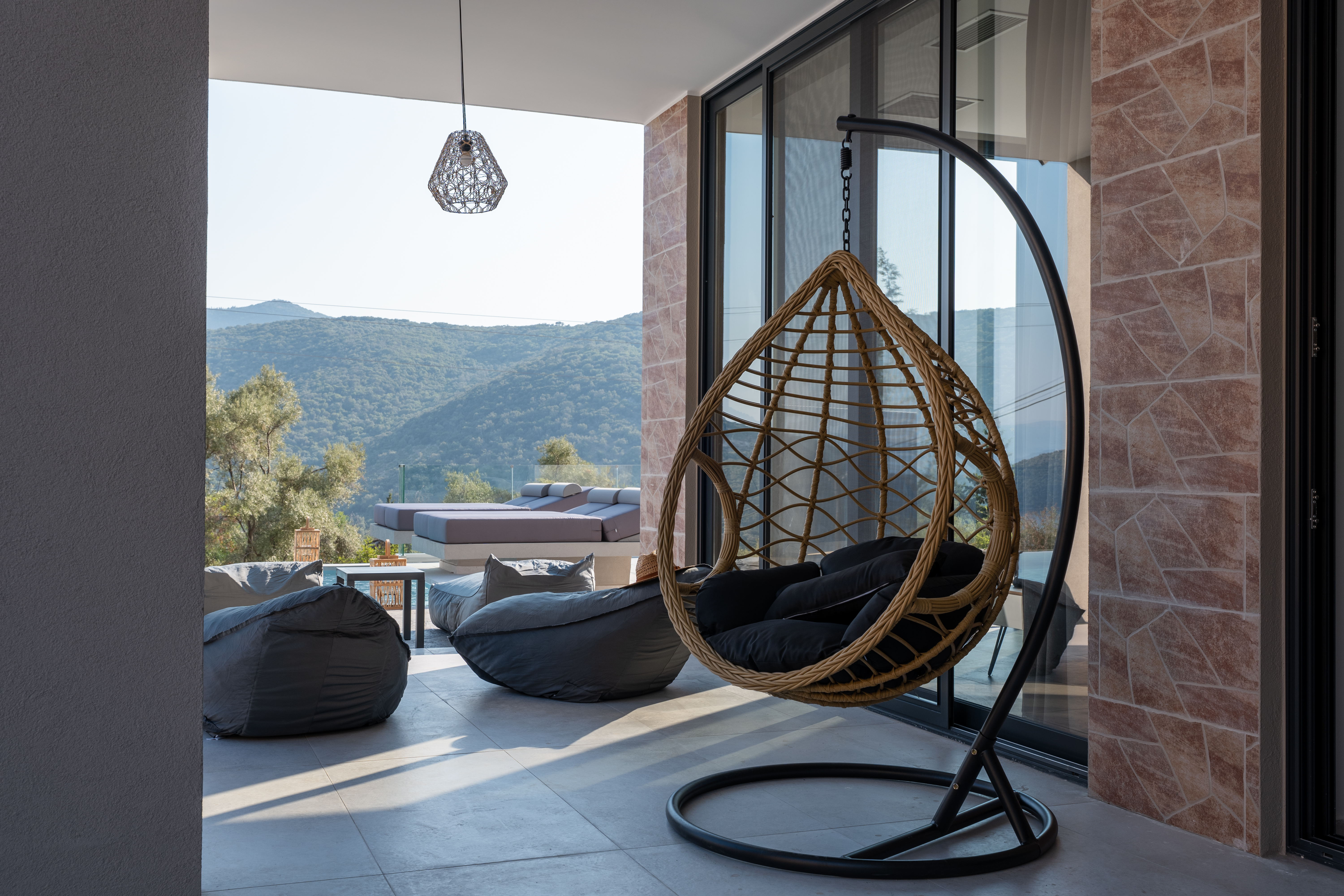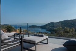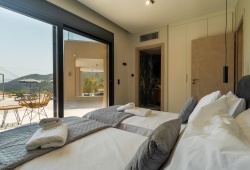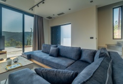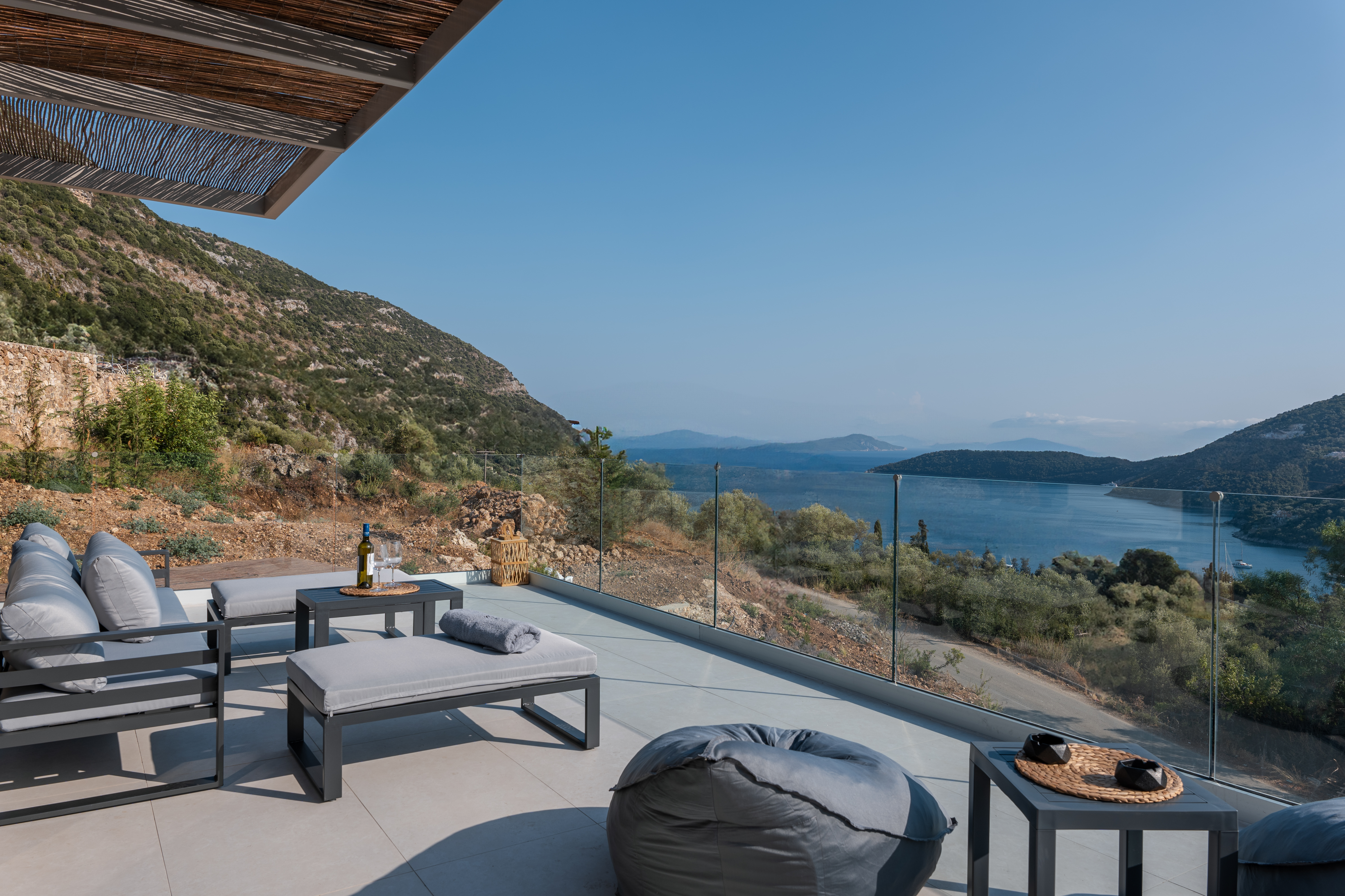 The brand-new Irini's Villa is in Lefkada on the verdant mountainside, surrounded by the olive trees of Poros. This property exudes tranquility, and its architecture organically integrates with the landscape. The expansive living area of the villa, which is created by the floor-to-ceiling sliding glass doors, will captivate you with its indoor-outdoor synergy. The section in front of you has a large lounge area and a kitchen with a dining area. The villa has five bedrooms, six bathrooms, a walk-in shower, and all the conveniences of a home. It also has a terrace and views of the Ionian Archipelago. A private pool with hydromassage, a safe box, a TV, air conditioning, a microwave and dishwasher in the kitchen, and private parking are further amenities. Your evening alfresco moments will be enhanced by the fully furnished BBQ, which is ideally located just outside the kitchen, and the outdoor eating area, which offers breathtaking views of the countless luxurious yachts that are slowly mooring into Mikros Gialos. The villa can accommodate from 6-10 guests. On the Ionian island of Lefkada, Irini's Villa offers all the comforts and extravagance you may require for your next Greek vacation.
