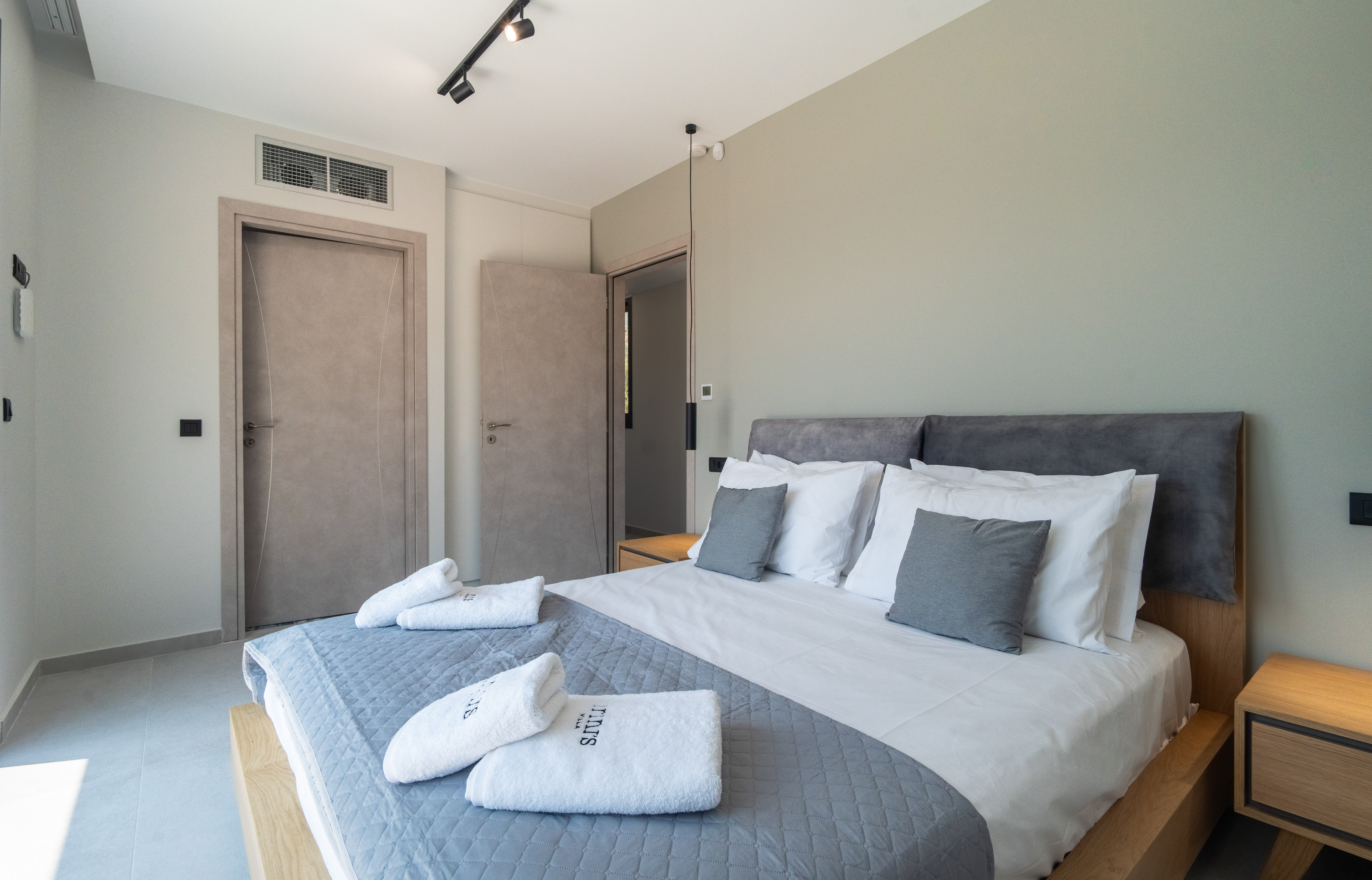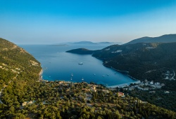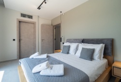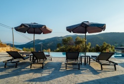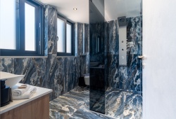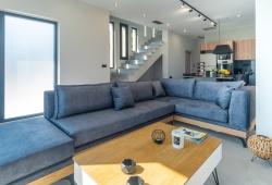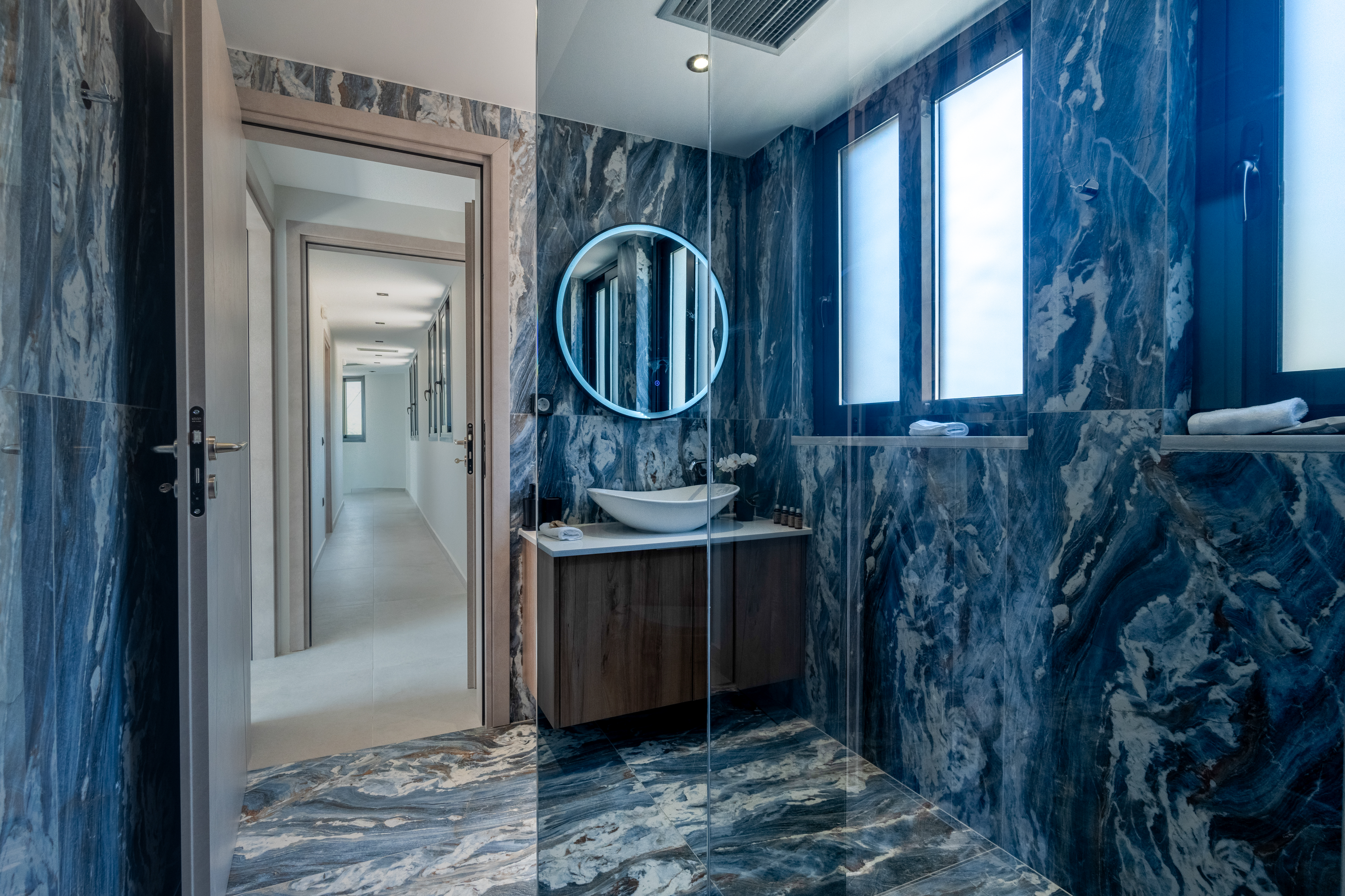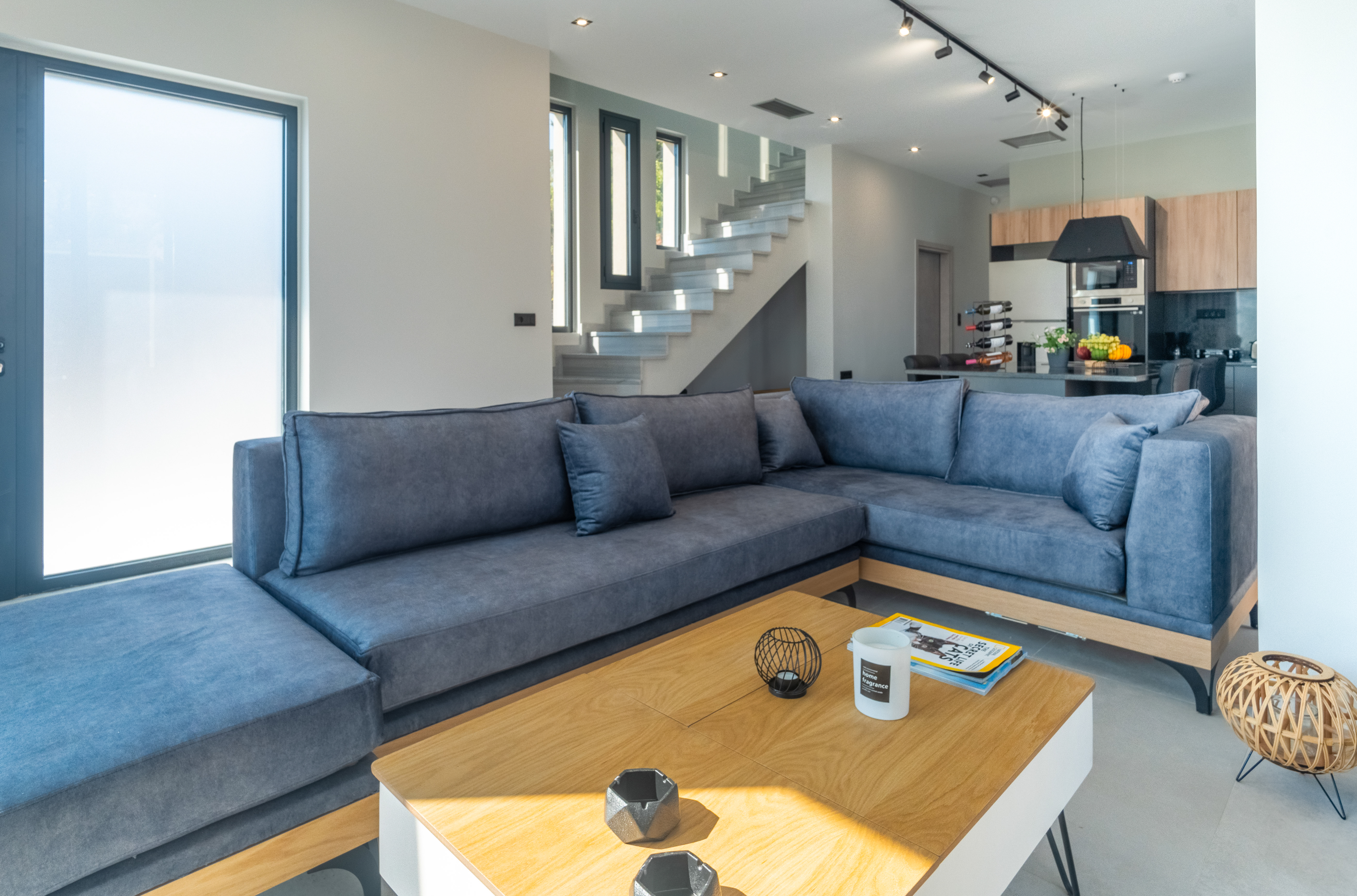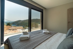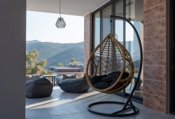 The brand-new Irini's Villa is in Lefkada on the verdant mountainside, surrounded by the olive trees of Poros. This property exudes tranquility, and its architecture organically integrates with the landscape. The expansive living area of the villa, which is created by the floor-to-ceiling sliding glass doors, will captivate you with its indoor-outdoor synergy. The section in front of you has a large lounge area and a kitchen with a dining area. The villa has five bedrooms, six bathrooms, a walk-in shower, and all the conveniences of a home. It also has a terrace and views of the Ionian Archipelago. A private pool with hydromassage, a safe box, a TV, air conditioning, a microwave and dishwasher in the kitchen, and private parking are further amenities. Your evening alfresco moments will be enhanced by the fully furnished BBQ, which is ideally located just outside the kitchen, and the outdoor eating area, which offers breathtaking views of the countless luxurious yachts that are slowly mooring into Mikros Gialos. The villa can accommodate from 6-10 guests. On the Ionian island of Lefkada, Irini's Villa offers all the comforts and extravagance you may require for your next Greek vacation.