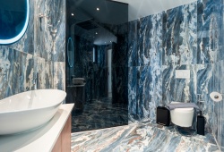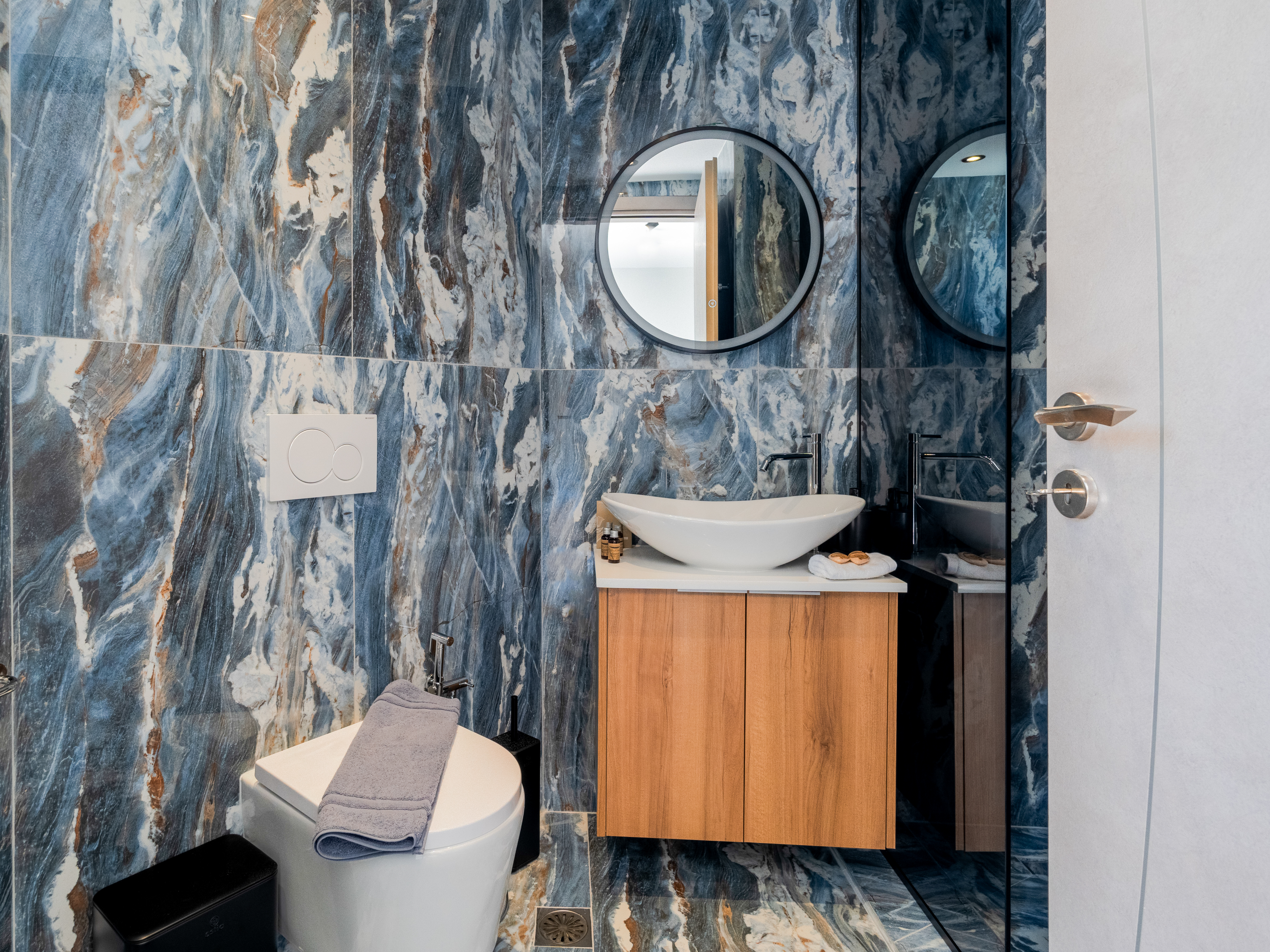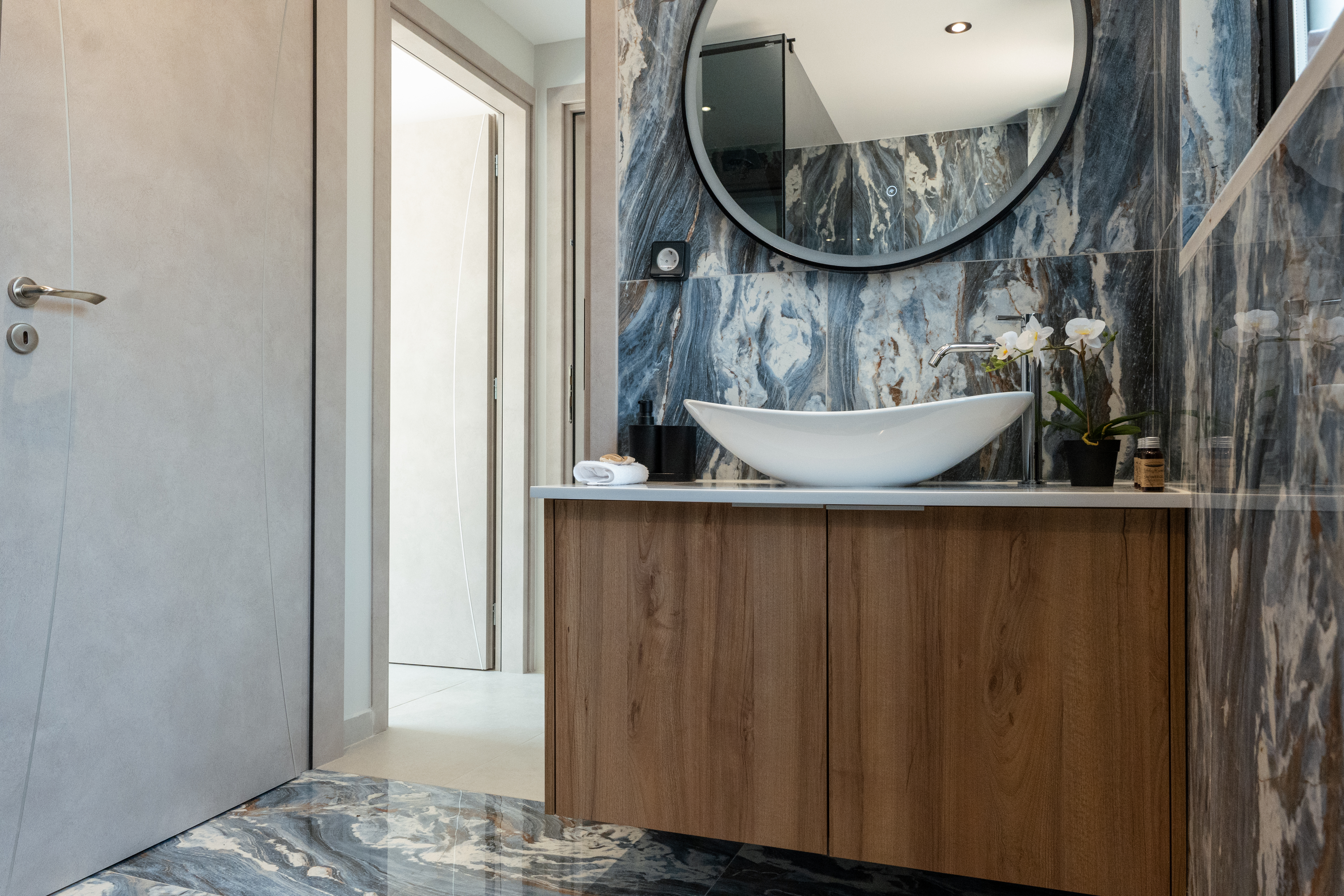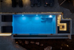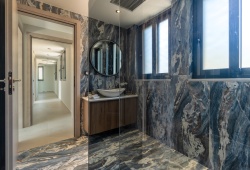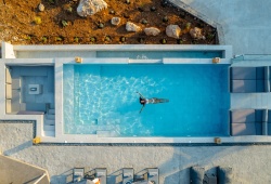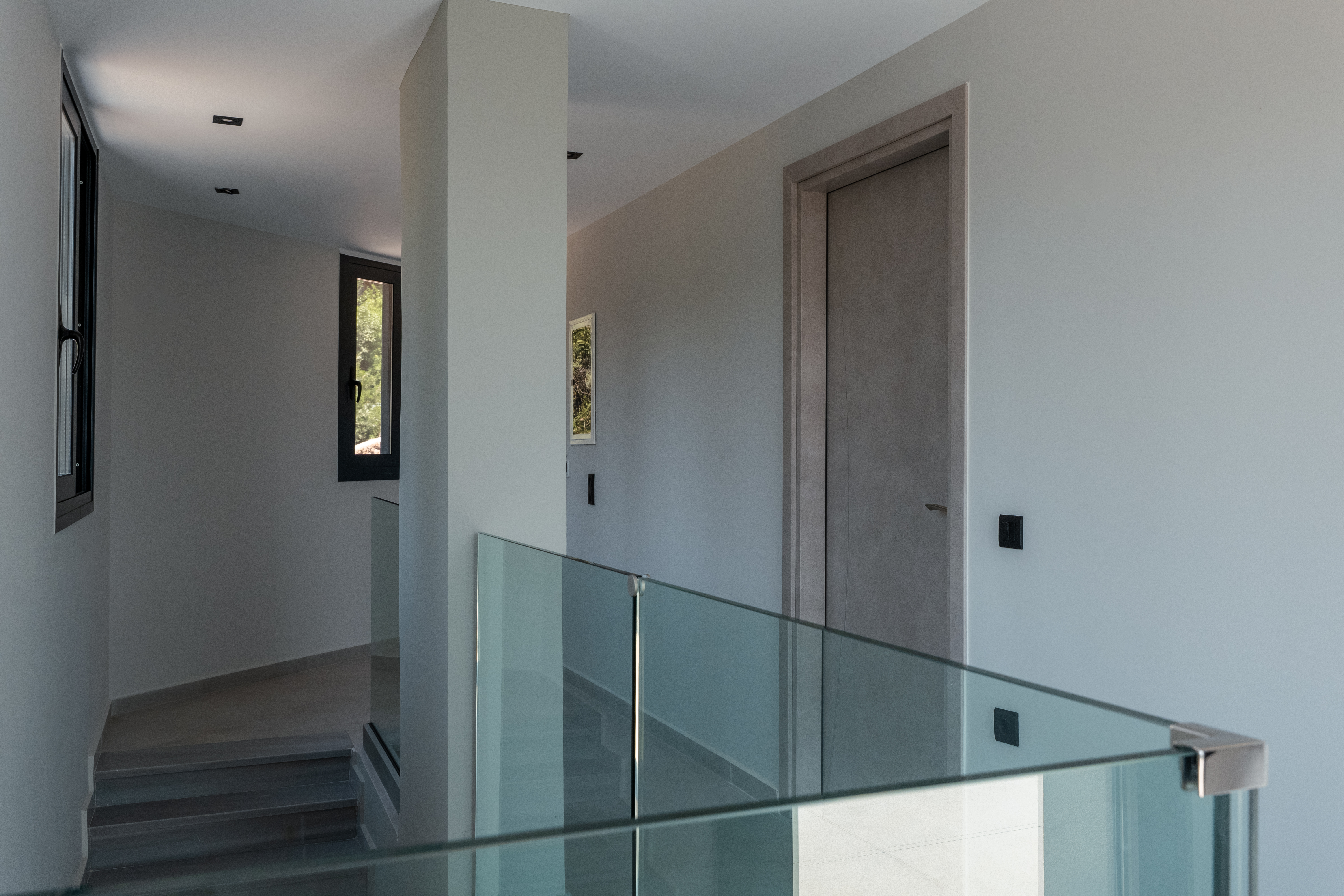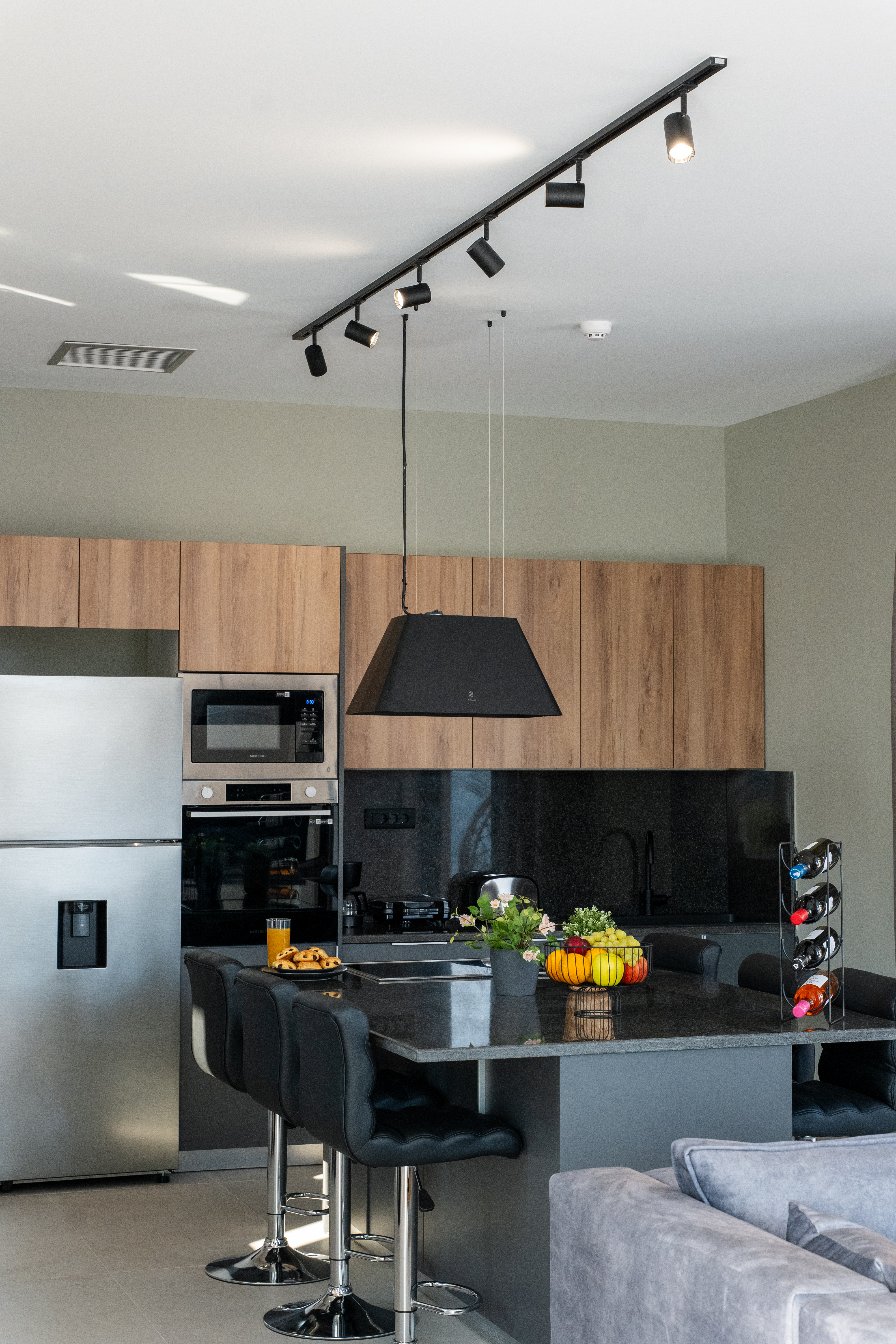 The brand-new Irini's Villa is in Lefkada on the verdant mountainside, surrounded by the olive trees of Poros. This property exudes tranquility, and its architecture organically integrates with the landscape. The expansive living area of the villa, which is created by the floor-to-ceiling sliding glass doors, will captivate you with its indoor-outdoor synergy. The section in front of you has a large lounge area and a kitchen with a dining area. The villa has five bedrooms, six bathrooms, a walk-in shower, and all the conveniences of a home. It also has a terrace and views of the Ionian Archipelago. A private pool with hydromassage, a safe box, a TV, air conditioning, a microwave and dishwasher in the kitchen, and private parking are further amenities. Your evening alfresco moments will be enhanced by the fully furnished BBQ, which is ideally located just outside the kitchen, and the outdoor eating area, which offers breathtaking views of the countless luxurious yachts that are slowly mooring into Mikros Gialos. The villa can accommodate from 6-10 guests. On the Ionian island of Lefkada, Irini's Villa offers all the comforts and extravagance you may require for your next Greek vacation.