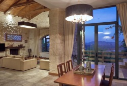 In Zakynthos, Agostenga is a three-bedroom villa made of stone that is situated on a hillside close to the Maherado region and the Saint Eleftherotria monastery. Agostenga has a patio and a balcony and offers media amenities like a television along with comforts like an air conditioner and an iron and ironing board. The inside has a fireplace, soundproofed windows, a work desk, and a sofa set. A bathtub, a walk-in shower, and a separate toilet are all included in the bathroom amenities. For enhanced comfort, bath sheets, shower caps, and a hair dryer are provided. Visitors can eat on-site at a restaurant with tea and coffee making facilities and a minibar. Additionally, the kitchen has utensils and a microwave oven. Enjoy your outdoor swimming pool for relaxation. The airport is 10 km away from the villa and 8 km from Zakynthos port.