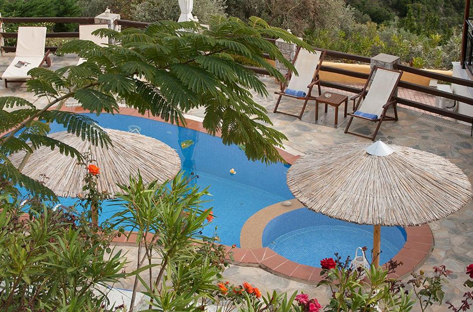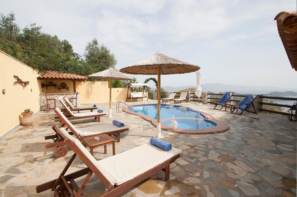 Villa Fotini is located on a stunning mountain in the Megali Ammos region, just 2.5 kilometers from the town of Skiathos. This lovely property was created for people who want both luxury and peace! Being the only two-story building on the property, it promises to provide amazing vacations and lifelong memories. A once-in-a-lifetime experience, the stunning view over the port, Skiathos's town, and the nearby islands of Skopelos and Alonissos is sure to leave you in wonder. The villa has a dining area, a fully functional kitchen, a balcony with views of the sea, three bedrooms, two bathrooms, bed linens, towels, and a flat-screen TV with satellite channels. In their soundproof room with tiled floors and a fireplace, guests may enjoy a relaxing stay. There is an outdoor dining area on the property. A rooftop pool is available for your leisure time. It is the ideal option for a family or a gathering of friends because it can easily fit up to six people. Megali Ammos Beach is 1.5 km from Villa Fotini, while Skiathos Airport is 4 km from the property.