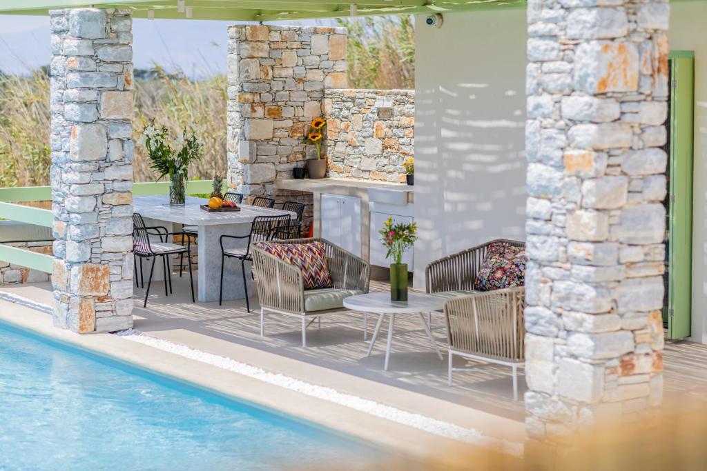 Plioni Villas and Suites on Naxos are nestled among lush, gentle meadows near the breathtaking Mikri Vigla beach, providing a unique experience. There are two villas with individual private pools and two suites with outdoor hot tubs waiting for you. The sounds of the tweeting birds and swaying reeds replace the noises of the sea here. Plioni Villas and Suites blends close proximity to nature with native Cycladic architecture.