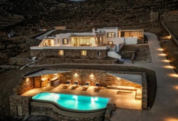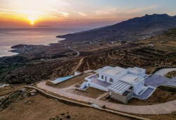Live the authentic Greek experience by staying at the Alos Residence in Tinos. They have a very modern interior that adheres to the most recent architectural and design trends, while the exterior is designed in accordance with the island's traditional architecture. A panoramic view of the Aegean Sea and its magnificent sunsets is provided by outdoor dining and sitting spaces beneath a pergola. Villa amenities include air-conditioning, a fully equipped kitchen, and a washing machine. Additional amenities include a barbecue, a swimming pool, Wifi, and free on-site parking. Alos Residence can accommodate up to 6 people. The main town of Chora, with its bustling nightlife and shopping, and the harbor are about 20 minutes away by car. The well-organized, sandy beach of Agios Romanos is also ten minutes away by car. Its location in Tinos is ideal for visiting and seeing the island's lovely villages, including Pyrgos, Kardianni, and the Dovecotes Valley.