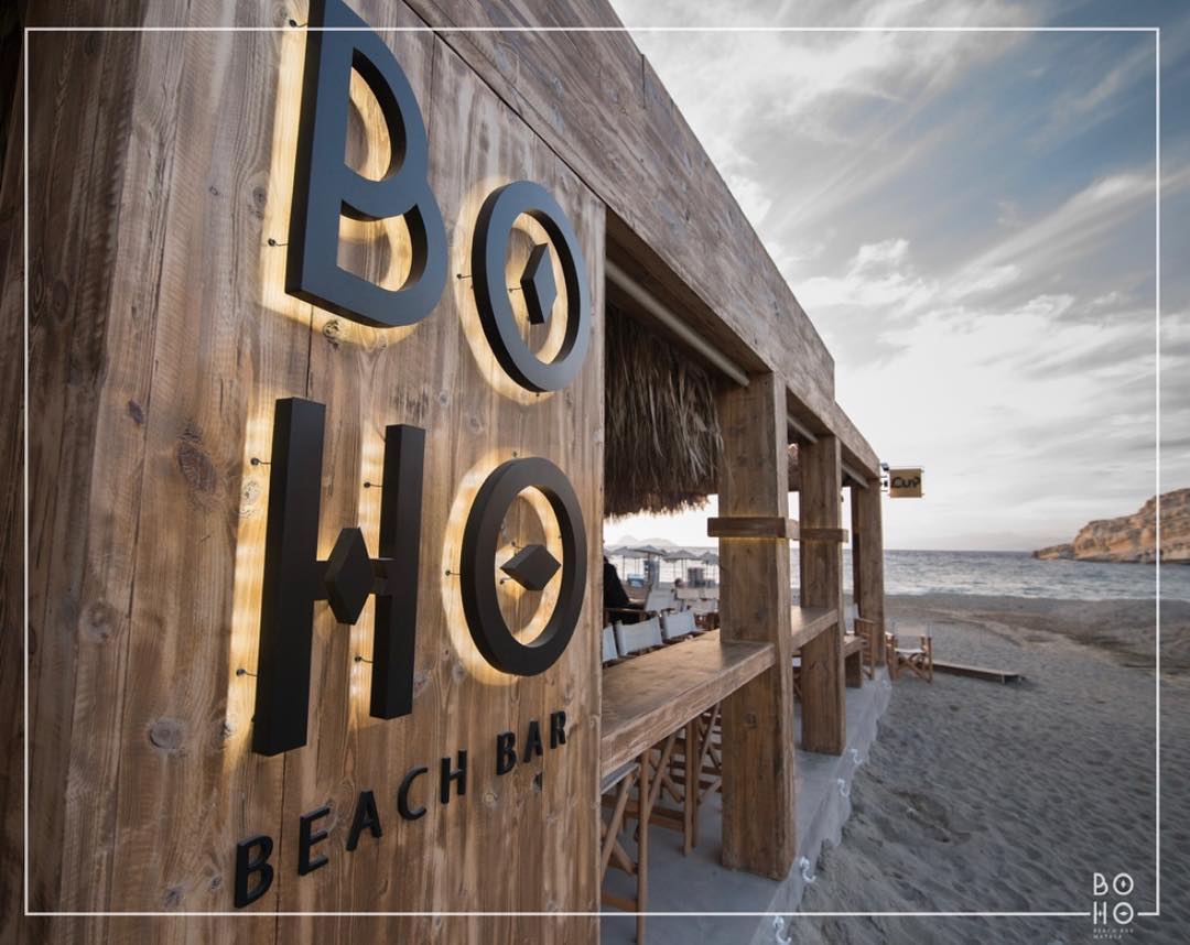 If you happen to be staying or travelling to Matala, Boho Bar is the place to be. During the day, you can relax on the beach and enjoy your coffee, snack, or drinks. And for your nightlife, you can taste wines from our wine bar selection or enjoy a unique cocktail. All on the famous beach of Matala in Crete, as the place is known for how to have a good time, maintaining good service, and having great drinks with an amazing and friendly atmosphere.