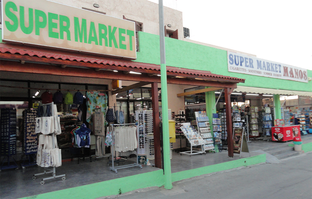 Large variety of food - household products – cleaning - sea items - sun creams – cosmetics-clothes also souvenirs and museum copies. Super Market Manos has all necessary products for your holidays in Crete.