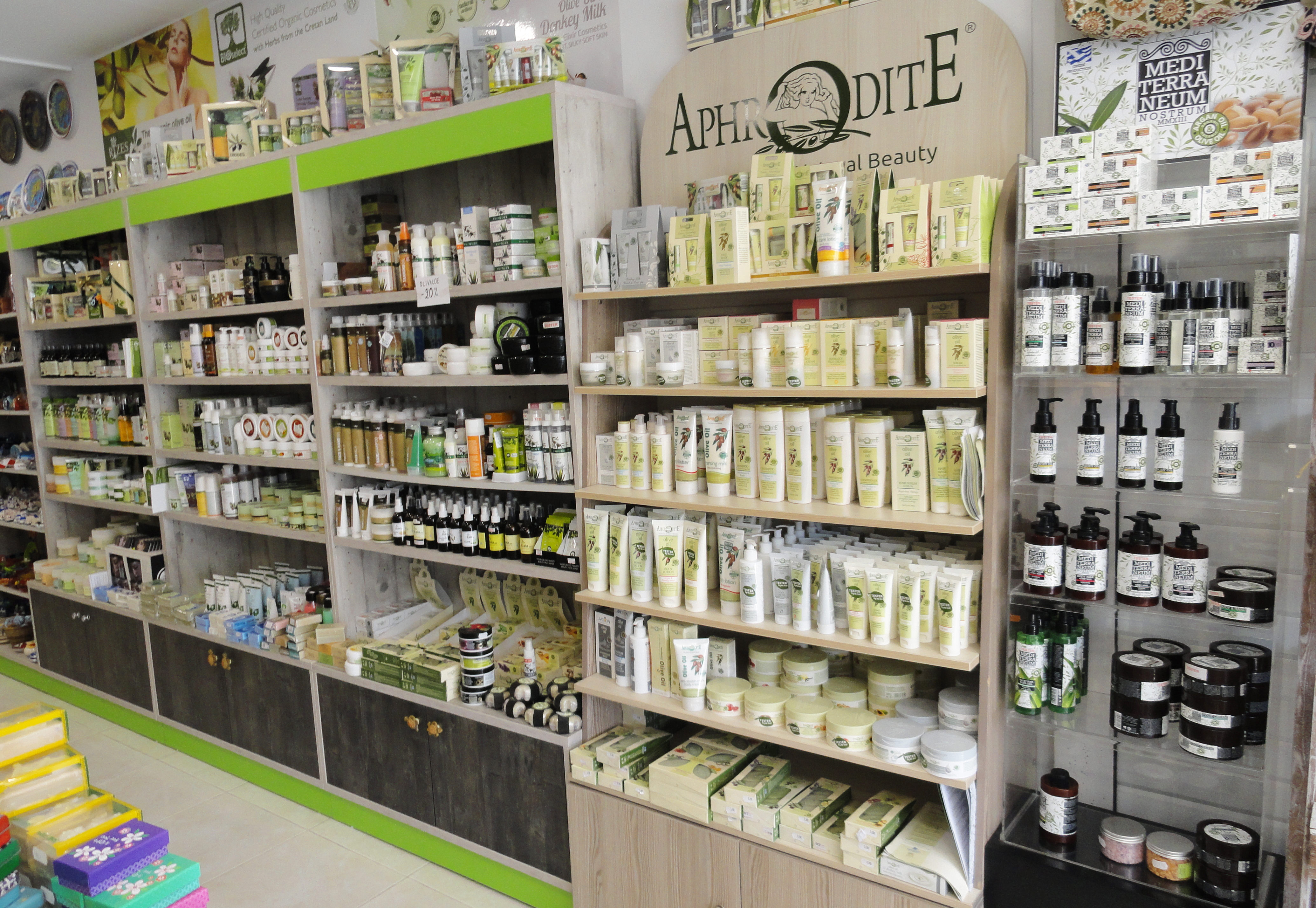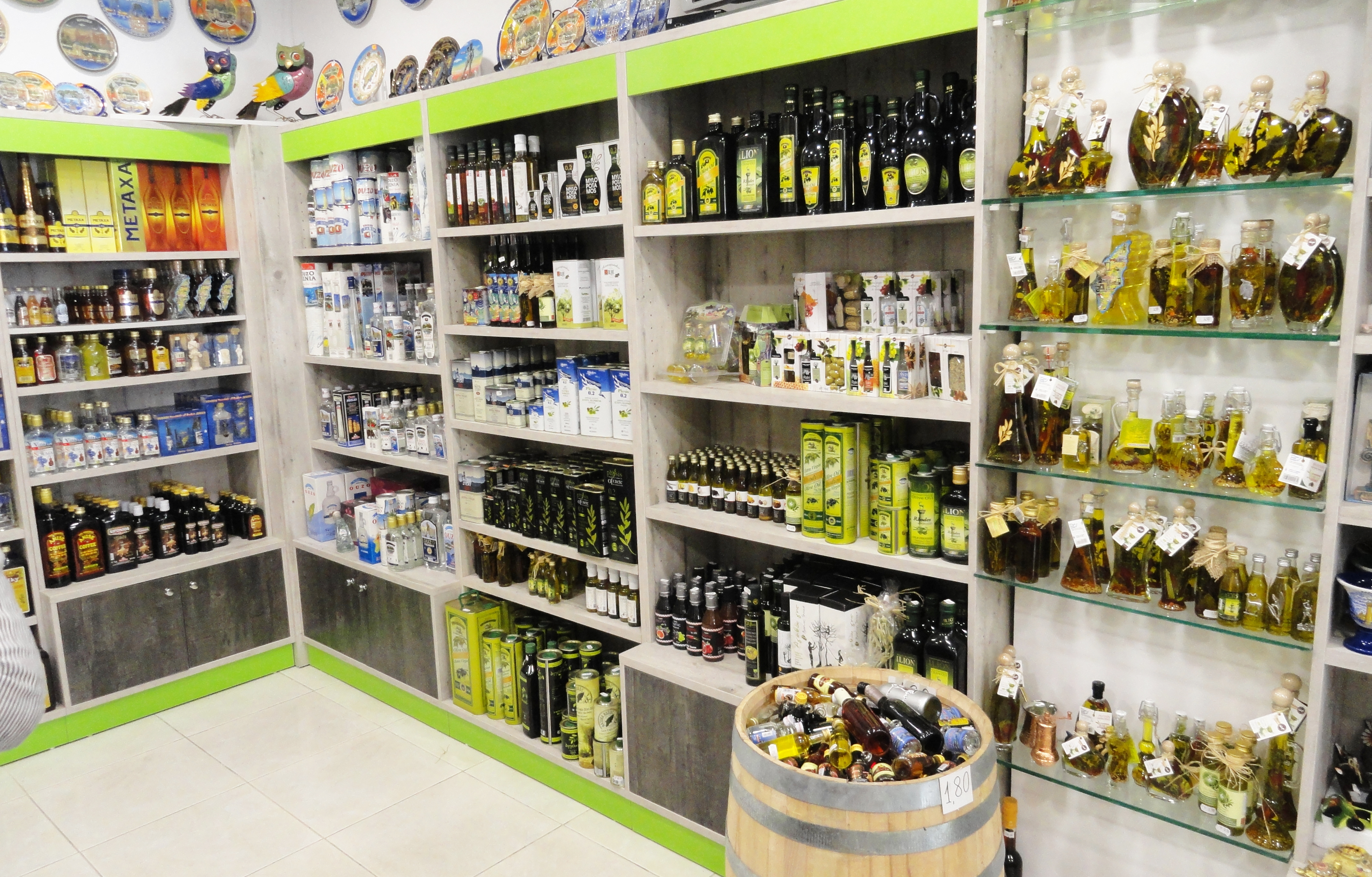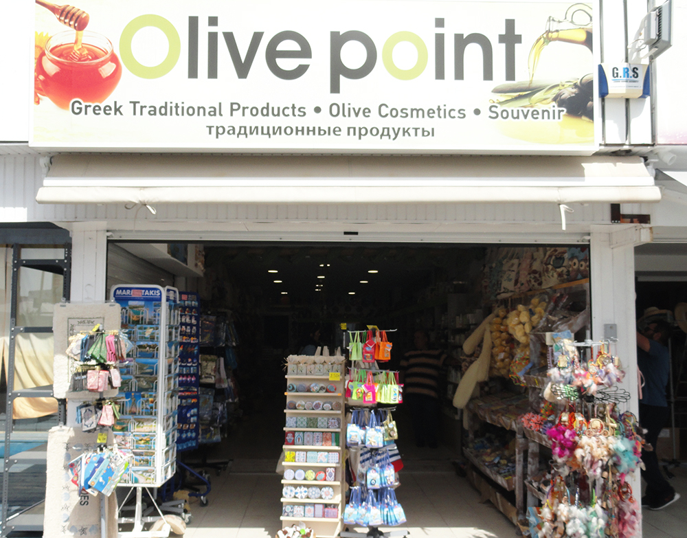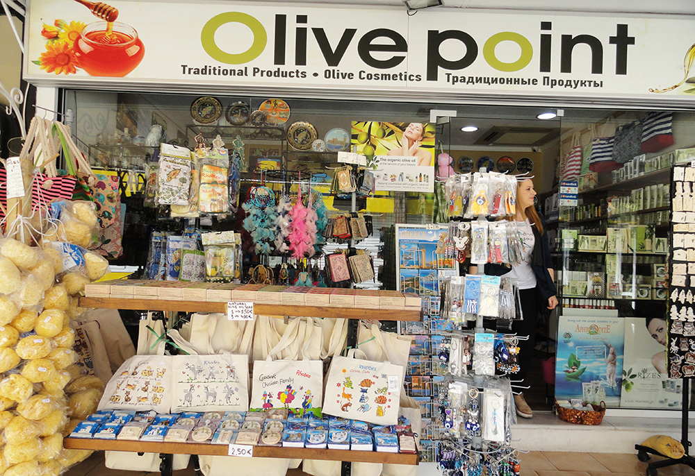 If you are looking for a truly traditional souvenir shop, prepare a shopping experience to buy gifts at Olive Point in Rhodes. There are two shops one located in Rhodes Town and the other in Faliraki. This welcoming place has everything you like to buy including Extra Virgin Olive Oil - Honey - Wine - Raki - Ouzo - Soaps - Natural Biological Cosmetics - Souvenirs - Ceramic Art - Folk Art - Spices - Herbs - Post Cards from Rhodes - Traditional Sweets. Olive Point is the best choice for gifts to bring back home and preserving of your holidays in Rhodes.