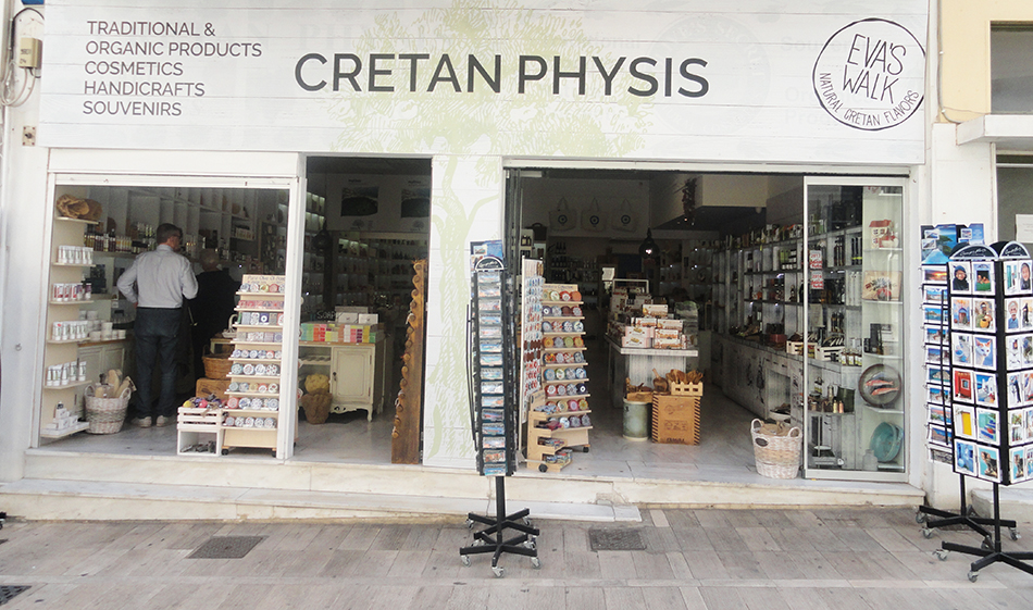 The traditional product store Cretan Physis is located in the center of Heraklion and offers the best and most quality Greek and Cretan products. You can find pure Cretan virgin olive oil, Cretan wines, Ouzo, Raki, Honey, Cretan Herbs and Spices, Sweets, Soaps, Natural Cosmetic products, souvenir, items from Cretan Folk Art, Cretan Ceramic Art , Accessories , Museum Copies and much more. The best place to shop where you will find all what is about Crete with a warm welcoming and outstanding service.