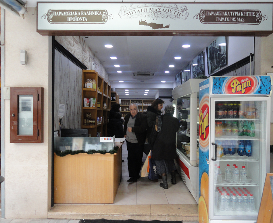 Prepare a shopping experience in Crete at this store providing traditional Cretan top quality products. Here you may find and buy Cretan cheese, pulses, meat products, fresh milk, jams, honey, herbs and spices, pure olive oil, wine, raki, ouzo, handmade pasta, sweets and chocolates. All products of Masaoutis in Heraklion are all registered from Cretan local companies. You are welcome to taste and enjoy all our products before you buy.