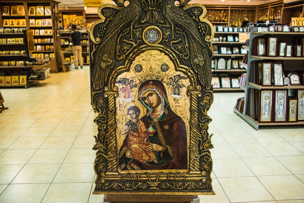 Experience the activity of shopping at one of the best shops in Kalambaka under the holy cliffs of Meteora. Visitors can choose from lithographs, silk screen, silver and gold and wonderful creations of excellent paintings hagiographers at Zindros Icons store. Images on flat wood, carved and dug. Simple, diptych and triptych with a background in genuine gold leaf. The company Zindros constantly growing, managed to be among the largest companies in the industry, with complete and organized distribution network, which guarantees fast service and prompt response to customer demands, both internal and external.