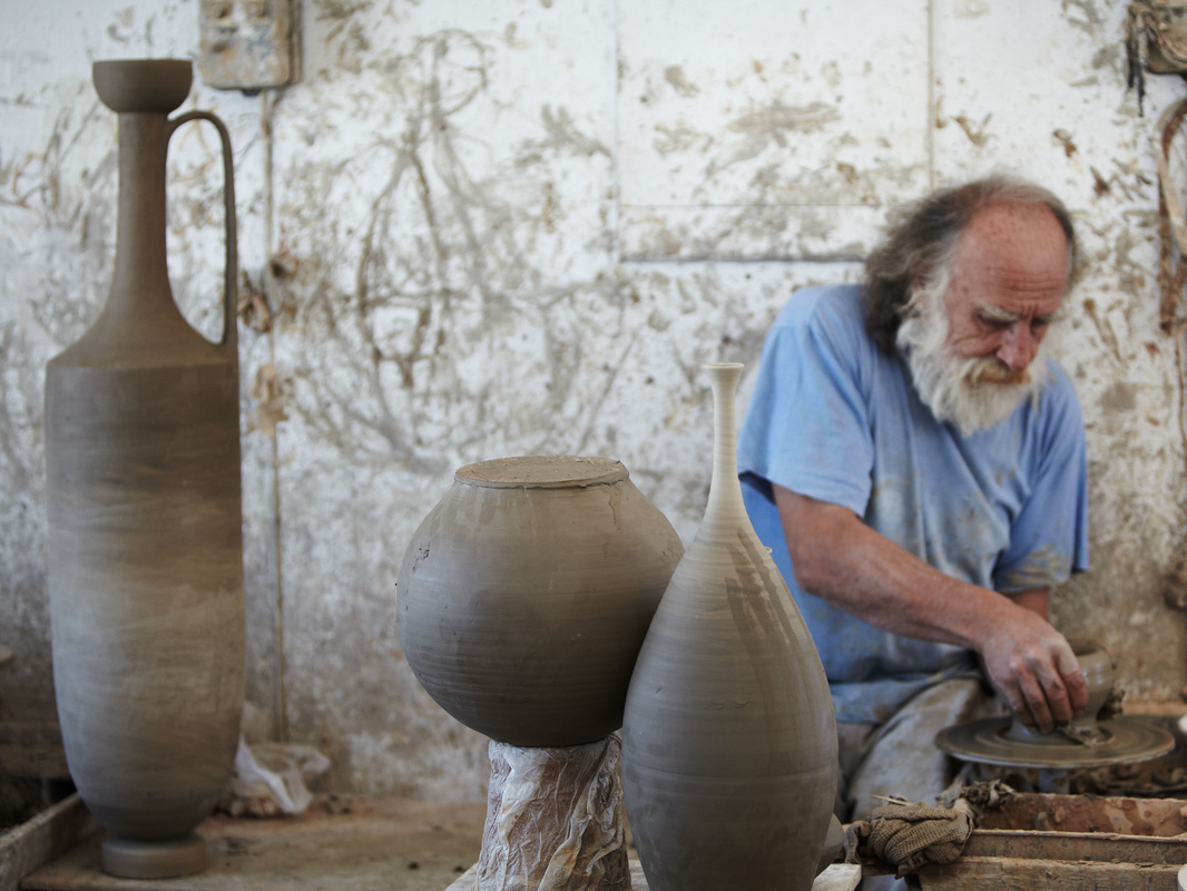 The owner of this workshop, established since 1985, living and working in Santorini, seduced by the magical light, the imposing landscape, the distinctive traditional village architecture, the arid yet blessed vineyards, and most of all by the culture, which after so many millennia remains an endless source of inspiration. Perpetually concerned with the future of this ancient art form in Greece—now that the School of Ceramics no longer exists—he is unrelenting in passing on his invaluable knowledge and especially his love of the art of ceramics to future generations. At Earth and Water, located in Megalochori, Santorini, you will find all kinds of beautiful and well-designed ceramics to keep as a souvenir during your holidays. Also offers cosy creative space and the possibility to try and practice in ceramic fields, making a piece of your own.
