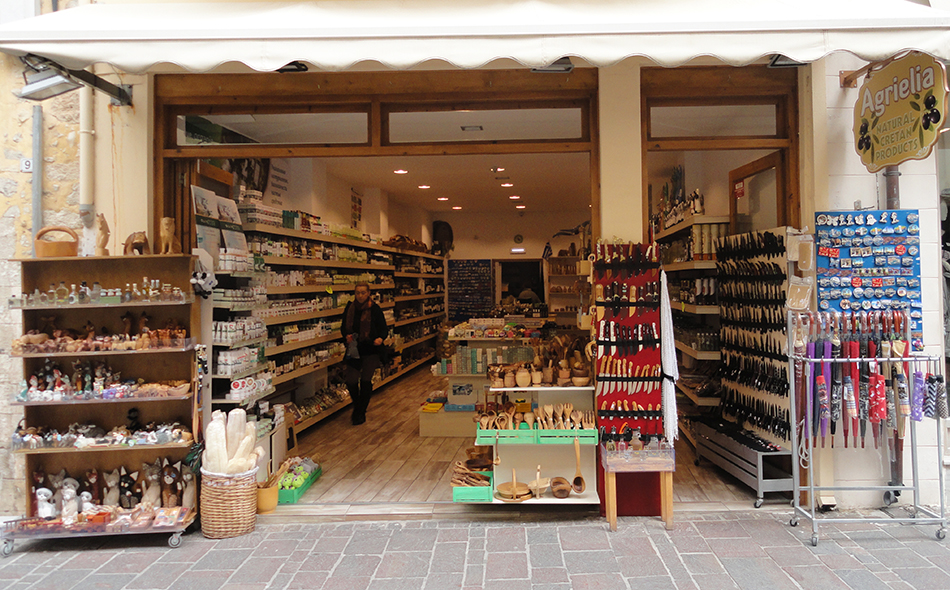 Agrelia offers the best and highest-quality Greek and Cretan products located in the center of Rethymnon. At the traditional product store Agrelia 1, you can find pure Cretan virgin olive oil, Cretan wines, Ouzo, Raki, honey, Cretan herbs and spices, sweets, soaps, natural cosmetic products, souvenirs, items from Cretan folk art, Cretan ceramic art, accessories, museum copies, and much more. There is always someone to guide you with a very friendly environment and the best reasonable prices.