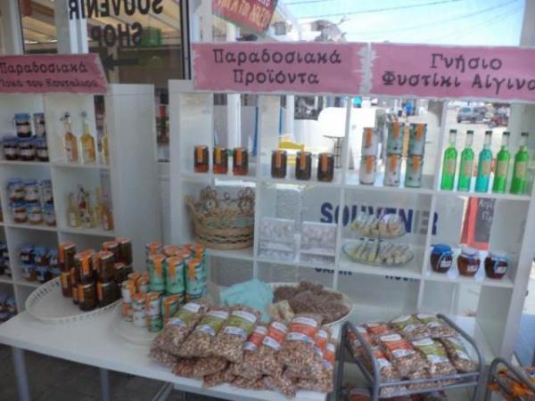 Find at one of the best shopping spots in Skala of Agistri, a souvenir shop with a variety from souvenirs, bathing suits, accessories, equipment for your sea trips & traditional sweets. Here at Mina's you will also find peanuts from Aegina island & honey at the department “perfume on a spoon.” An ideal place for gifts to travel back home with from a memorable holiday in Agistri.