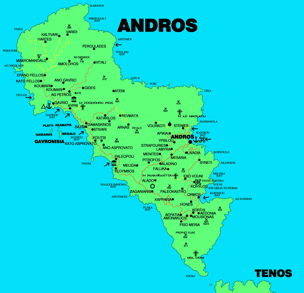 ►Explore the main regions of Andros Island : Andros Town, Batsi, Gavrio.
