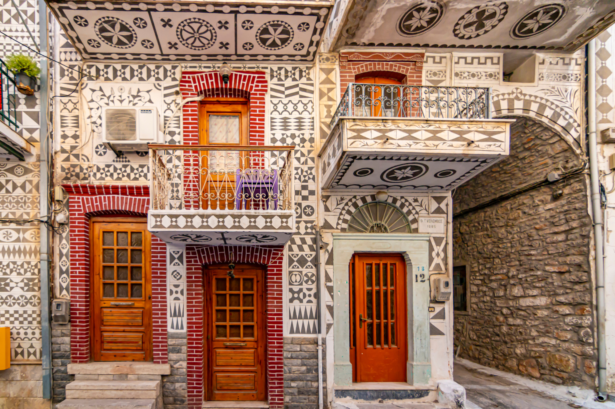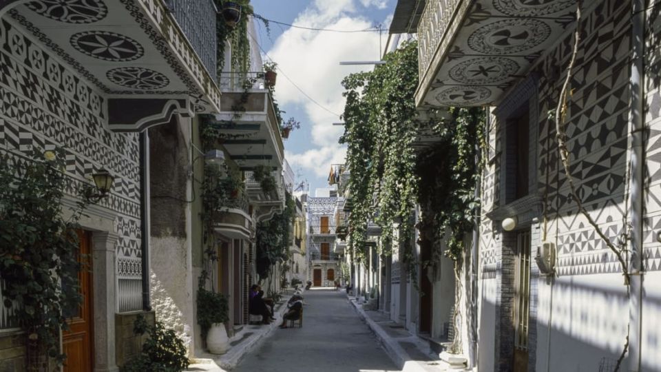 Tour around Pyrgi in Chios, a charming and traditional village located on the southern part of the island and renowned for its mastic production. The village is unique in that its houses are built closely together, forming an impressive outer wall of a castle. Discover the rich history of Pyrgi by visiting its notable landmarks, such as the Byzantine temple of Agioi Apostoloi, the bell tower of the church of the Dormition of Virgin Mary, the Defensive Tower of Pyrgos, and the former residence of Christopher Columbus. Be sure to indulge in the local hospitality by staying in one of the many accommodations available, enjoying a coffee in one of the cozy cafes, or savoring a delicious meal at one of the village's top-rated taverns. Experience the true essence of Pyrgi and immerse yourself in the beauty of this unique destination.