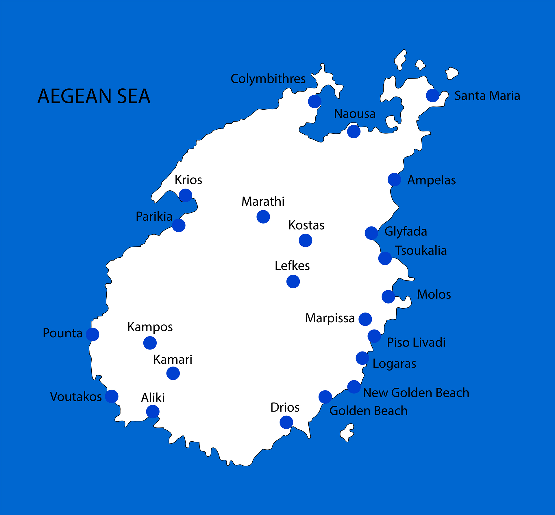 ►Explore the main regions of Paros Island : Chrissi Akti, Lefkes, Naoussa, Parikia.