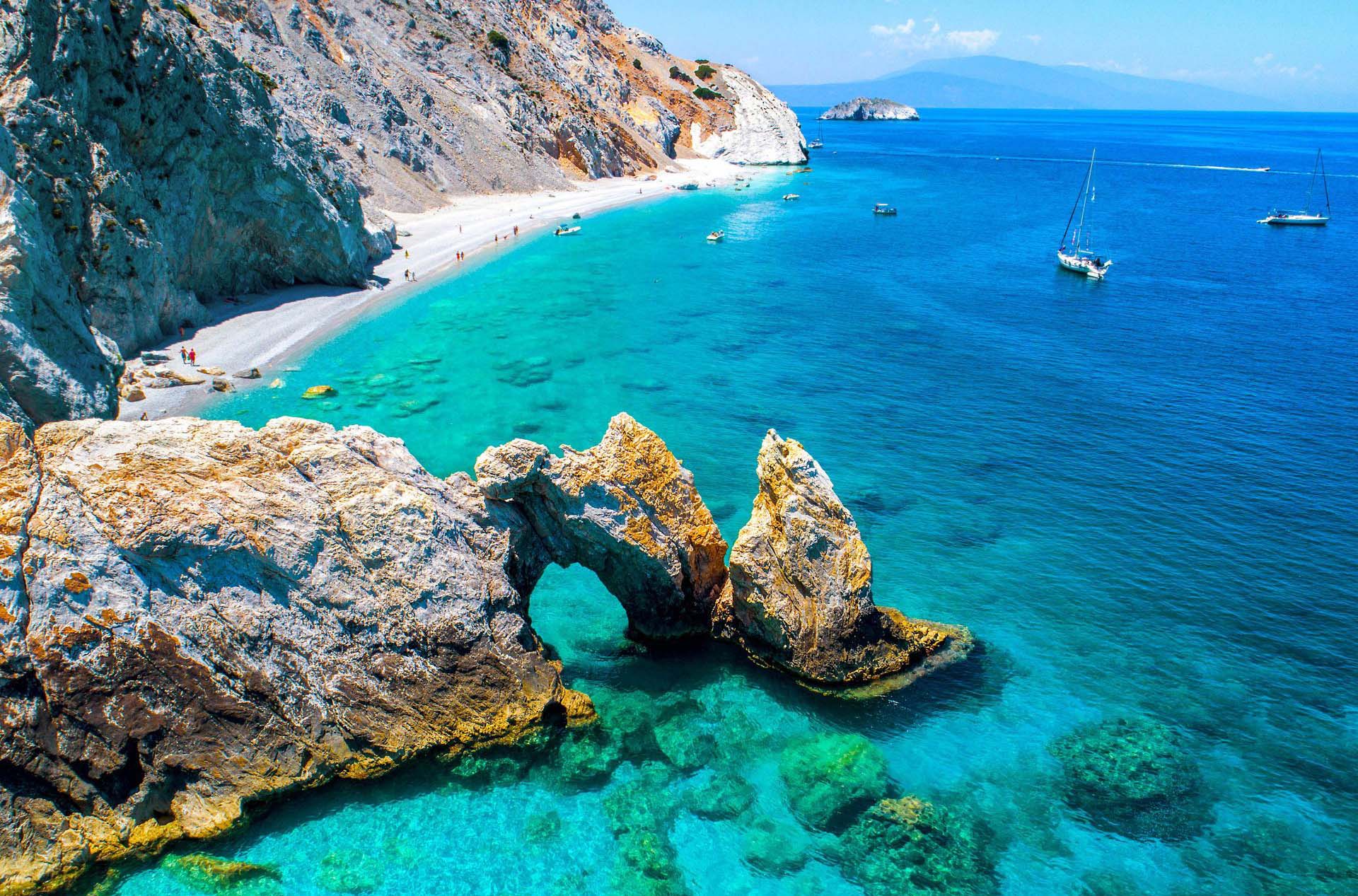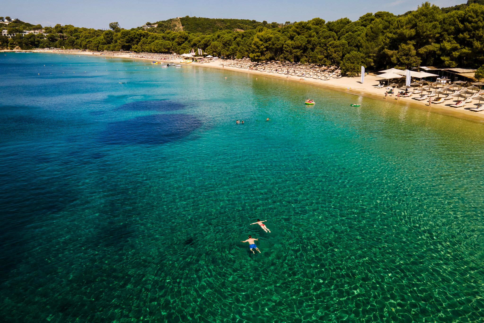 Koukouniares is home to the well-known beach, considered to be the greatest beach on Skiathos, if not in all of Greece or the Mediterranean. The beach is well-maintained, with sun loungers, umbrellas, snack shops, and kiosks for your basic needs. For the more active visitor, water sports schools are available right on the beach. We recommend exploring the magnificent sea by going scuba diving and capturing great photos to show off to your friends from your Greek vacation.